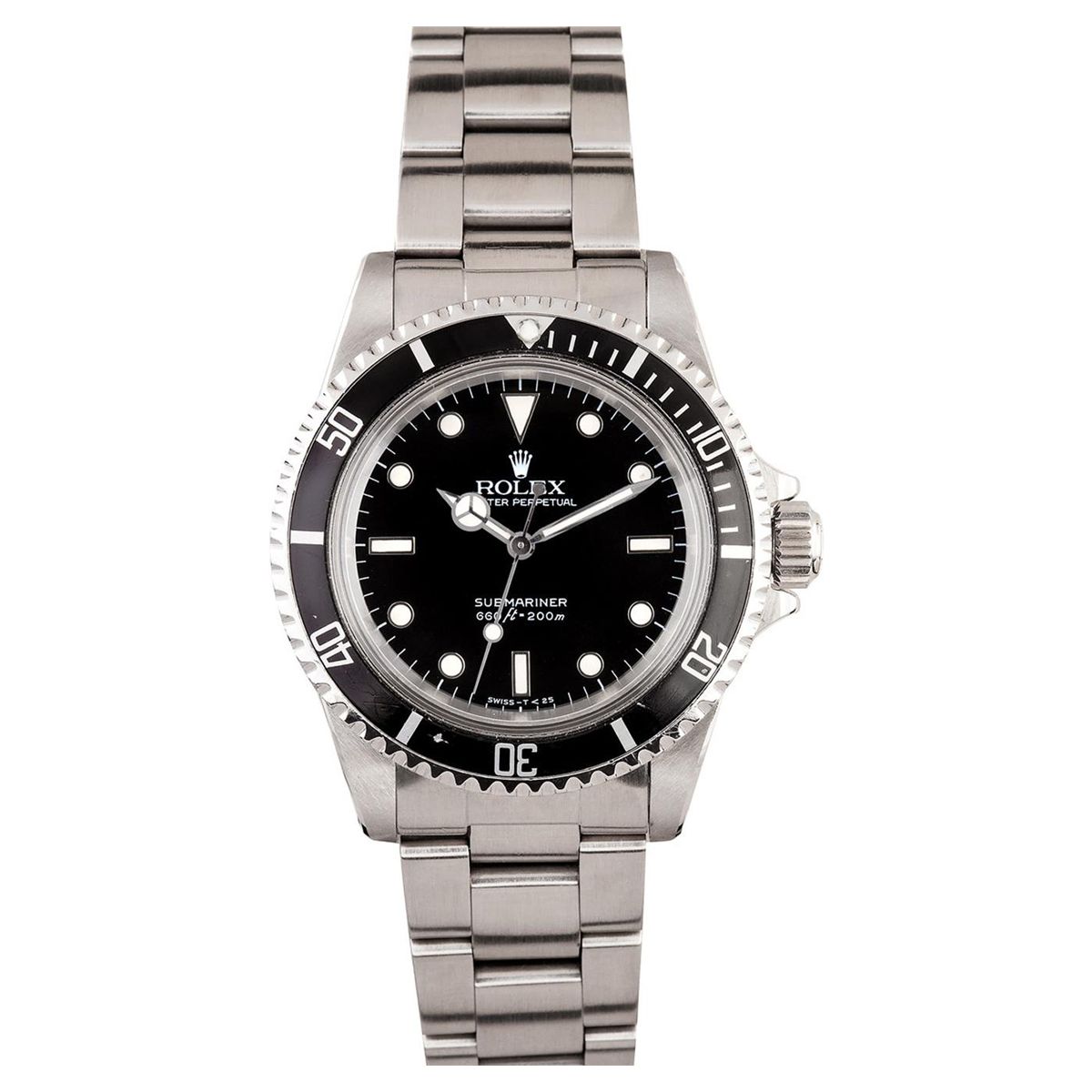 One gents stainless steel Rolex Submariner wristwatch. Model Name/Number: Submariner 5513. The watch features automatic 1520  movement, waterproof screw-down crown, acrylic crystal. Case: Stainless steel case,  rotating divers bezel, pierced lugs. Dial: Black "spider" dial. Bracelet: Rolex 93150 Oyster with 580 end links (12 links).