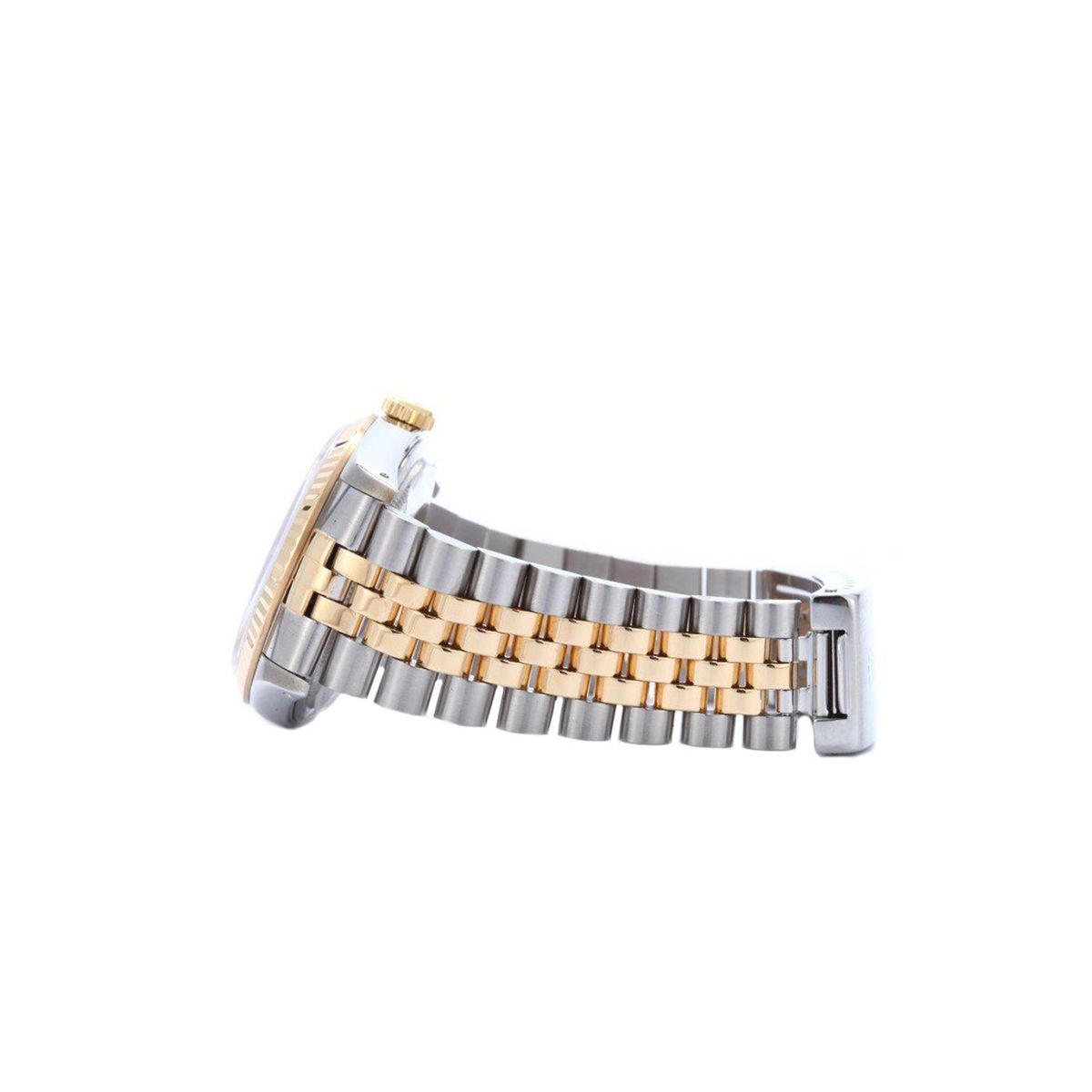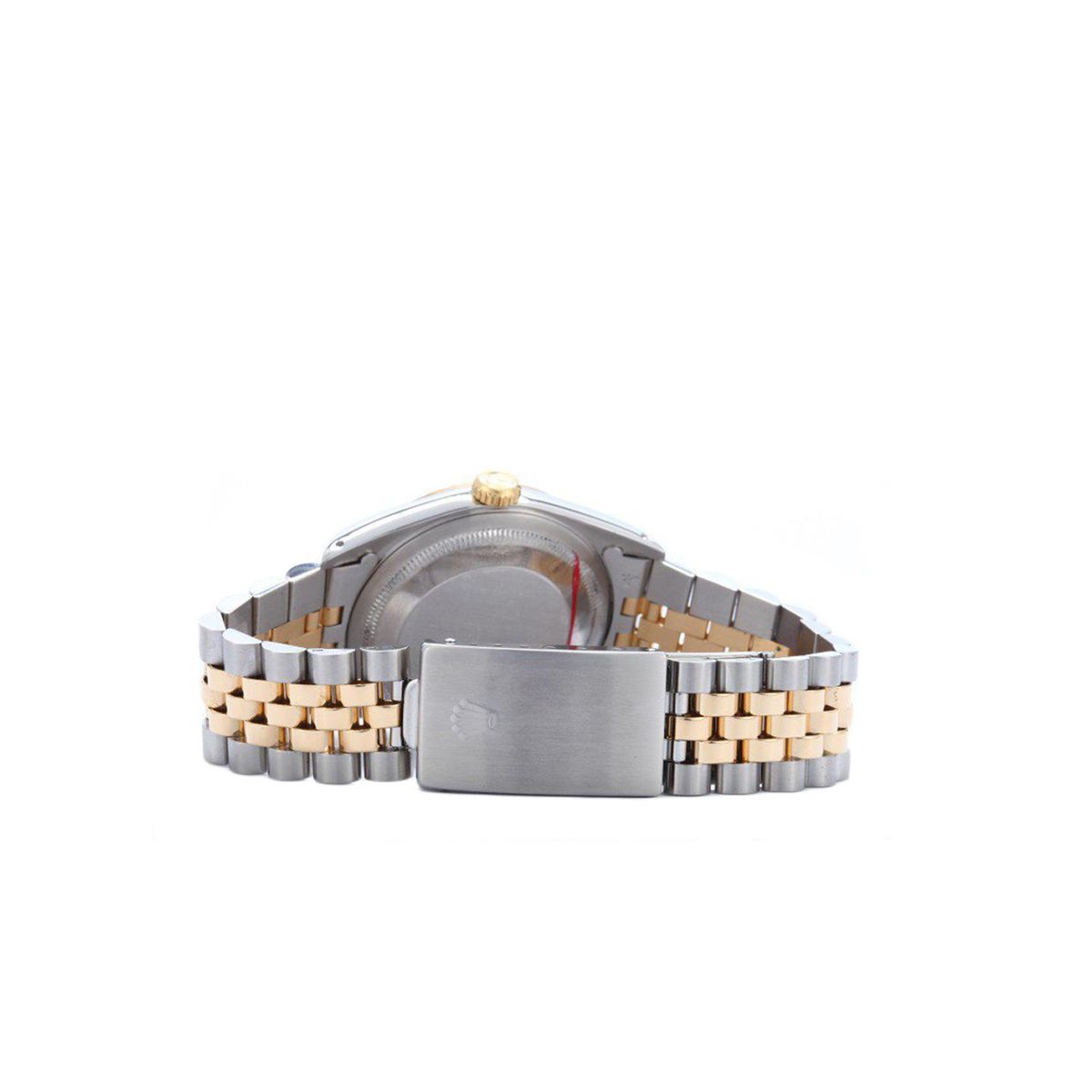 One gents stainless steel and 18KT yellow gold Rolex DateJust wristwatch. Model Name/Number: DateJust 16233. The watch features automatic movement with date, scratch-resistant sapphire crystal, waterproof screw-down crown, Quickset. Case: Stainless steel with 18k yellow gold fluted bezel (36mm). Dial: Black Index. Bracelet: Stainless Steel and 18k yellow gold Jubilee.