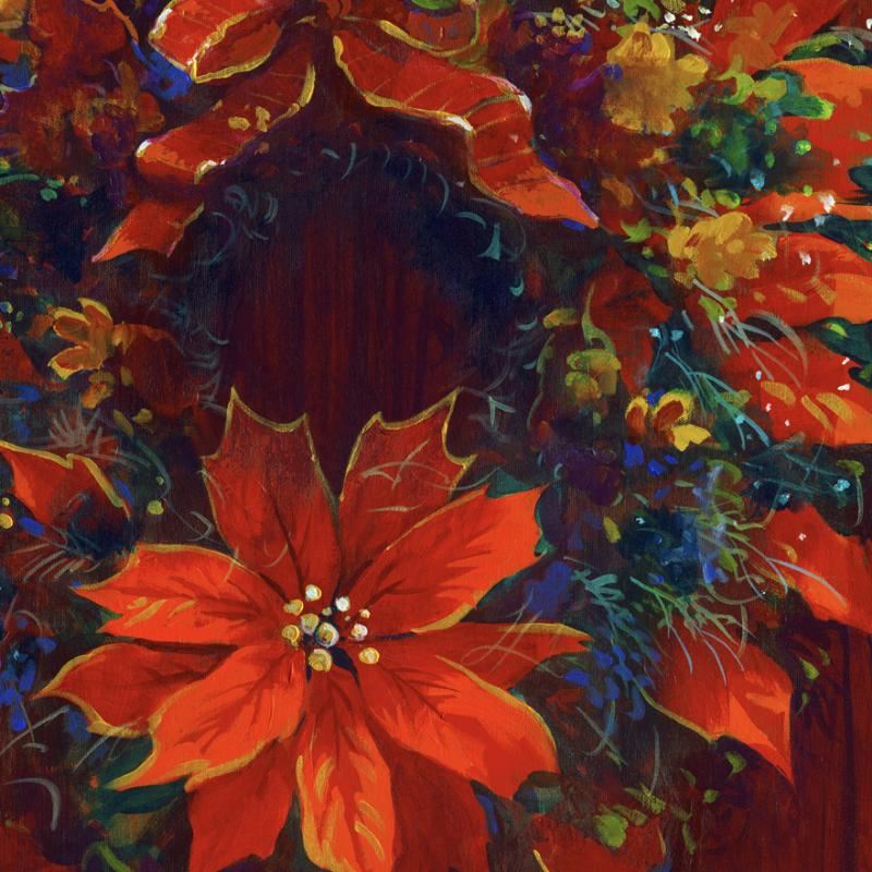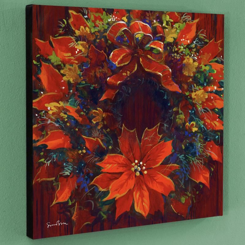 Simon Bull depicts gleaming flowers with bold hues and delicate details, creating graceful and elegant pieces of art. "Holiday Homecoming" is a limited edition giclee on canvas, numbered and bearing Bull's authorized signature. This piece is gallery wrapped and ready to hang. Measures approx. 20" x 20" x 1.5" (image).