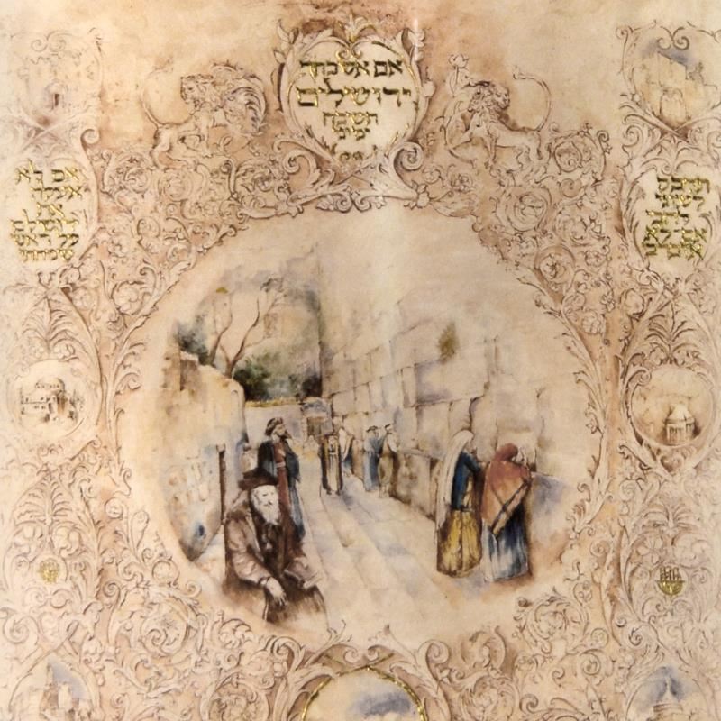 "Holy Places" is a mixed media giclee on handmade Indian paper by Brachi Horen, hand signed by the artist! This creation received personal attention by the artist in the form of water coloring and gilding. This piece has been custom framed using acid free materials and is ready to hang! Includes Certificate of Authenticity! Measures approx. 28" x 36.5" (with frame), 15" x 23.5" (image).