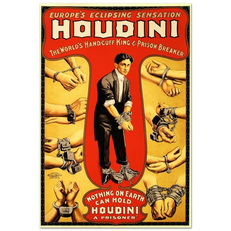 "Houdini" is a hand pulled lithograph on paper by the RE Society. Includes Certificate of Authenticity! Measures approx. 27" x 41" (image).