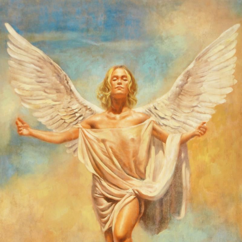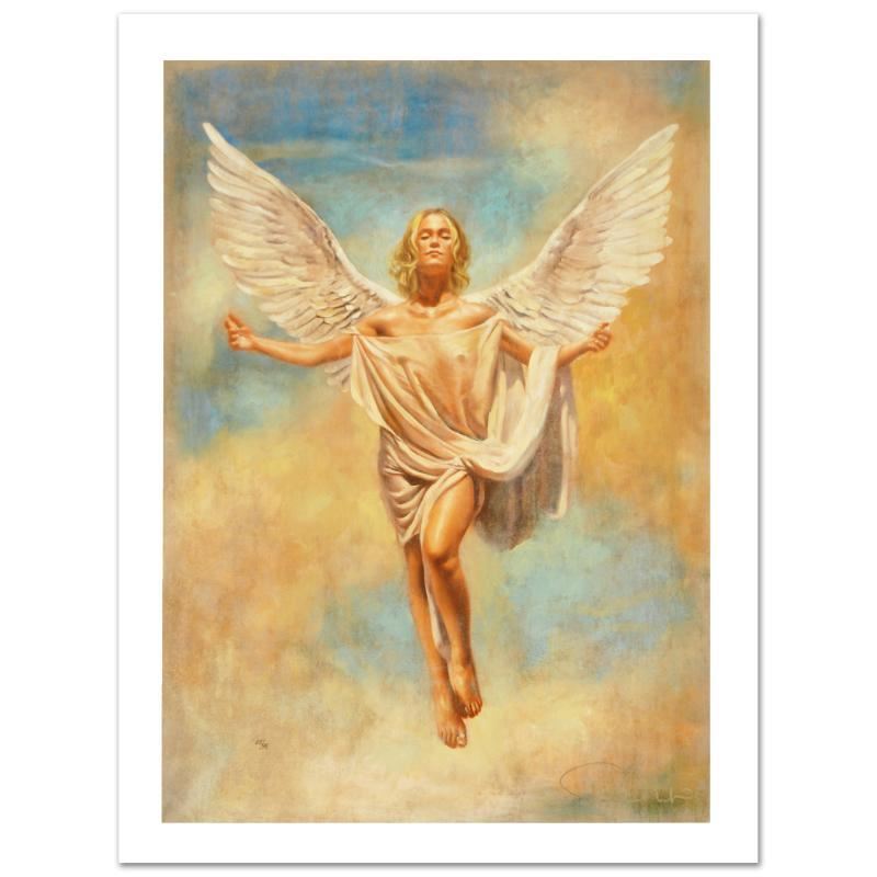 With a style that is reminiscent of the frescoes of Michelangelo and Caravaggio, Tomasz Rut creates breathtaking works of art that capture the beauty of the human form. "In Descendo" is a limited edition hand embellished giclee on canvas, numbered and hand signed by Rut. Includes Certificate of Authenticity! Measures approx. 22.5" x 31.5" (image).