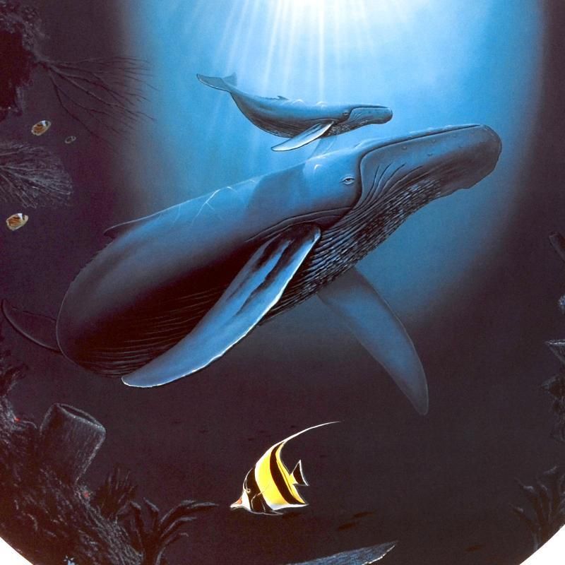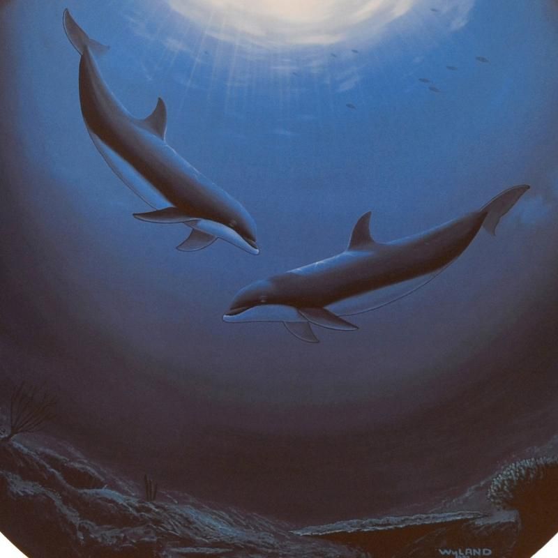 Wyland's interest in and passion for marine life and aquatically-inspired artwork is evident in everything he creates. "Innocent Age / Dolphin Serenity" is a limited edition lithograph on paper, numbered and hand signed by Wyland! Measures approx. 38" x 25" (with border), 37" x 18" (2 round images).