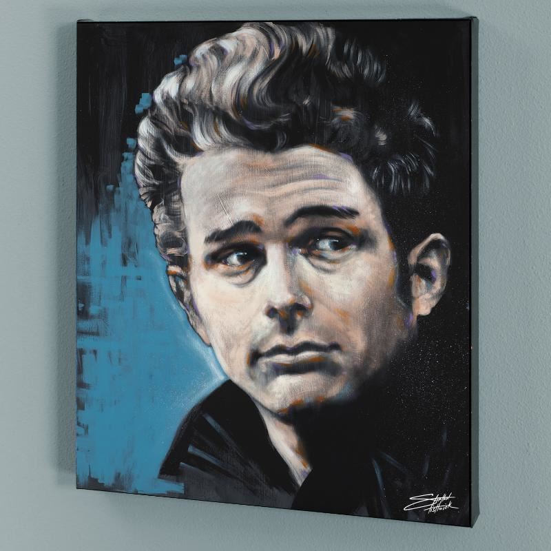 With bright colors and expressive lines, Stephen Fishwick puts a unique spin on pop culture portraits. "James" is a limited edition giclee on stretched canvas, numbered and bears the artist's authorized signature. This piece comes gallery wrapped and ready to hang! Includes Certificate of Authenticity! Measures approx. 16" x 20" (image).