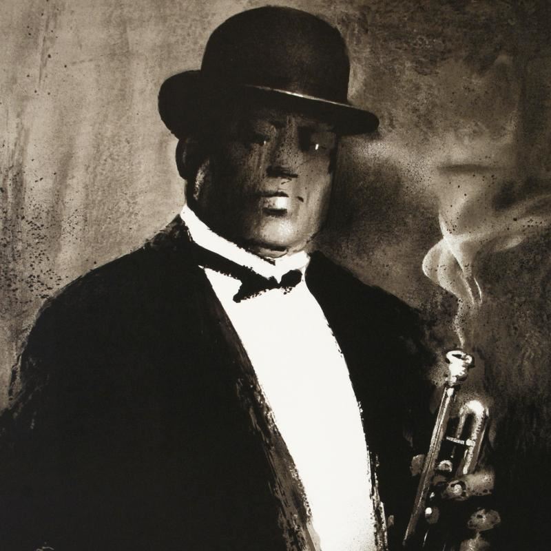 "King Oliver" is a limited edition lithograph on museum quality deckle-edge paper, numbered and hand signed by Waldemar Swierzy (1931-2013). Measures approx. 24" x 33" (image).