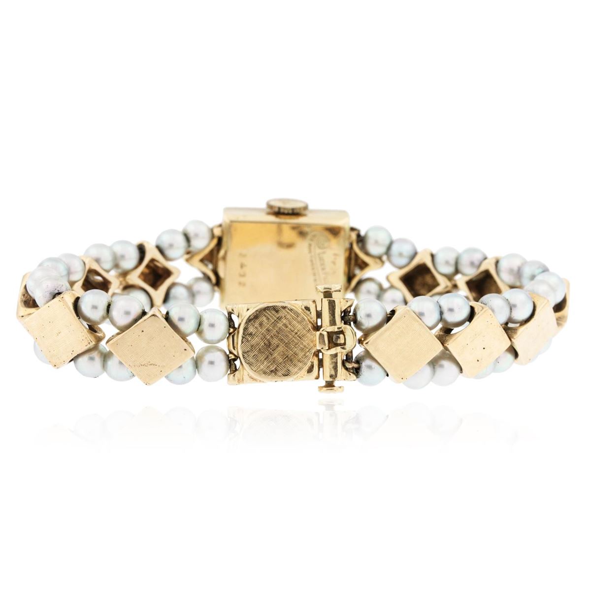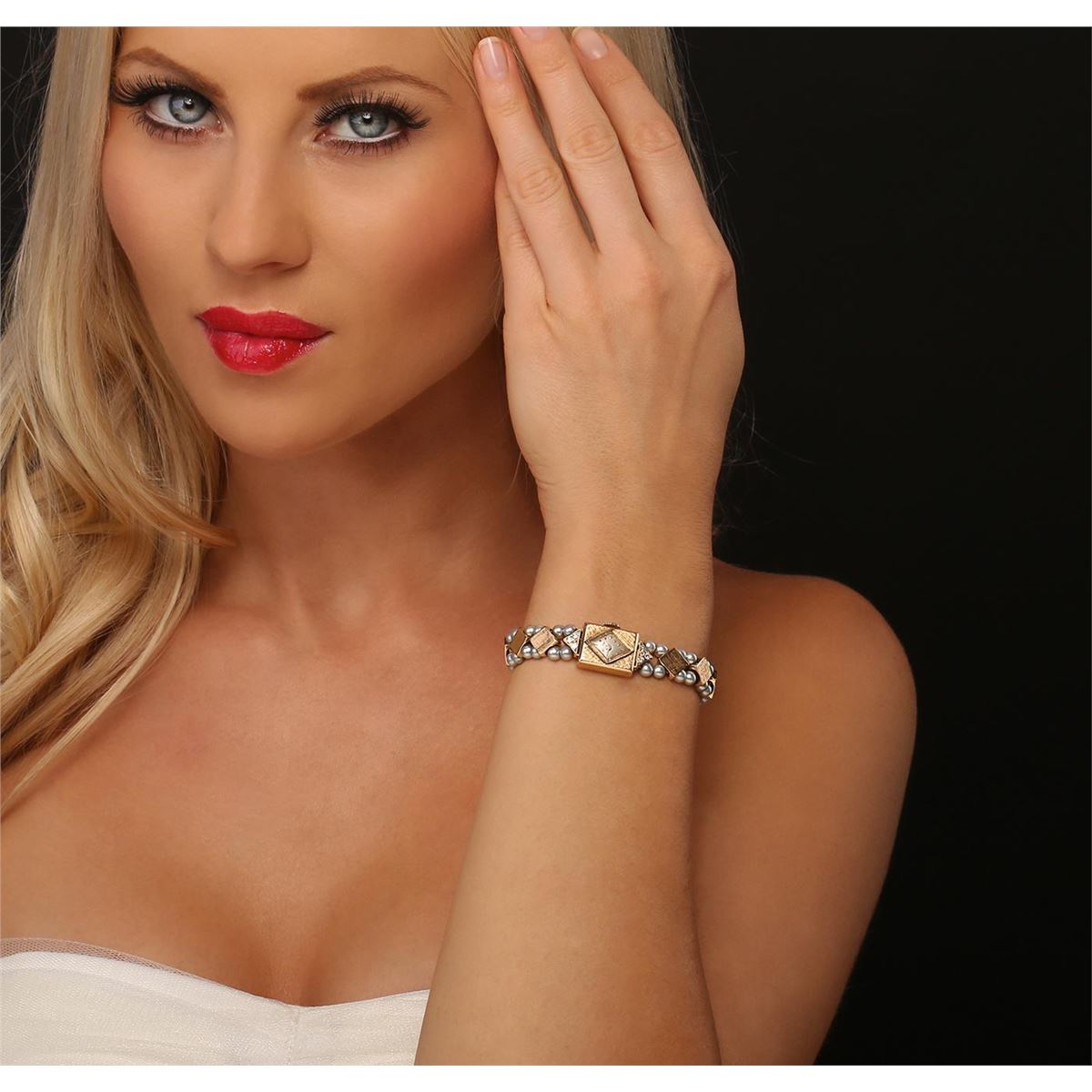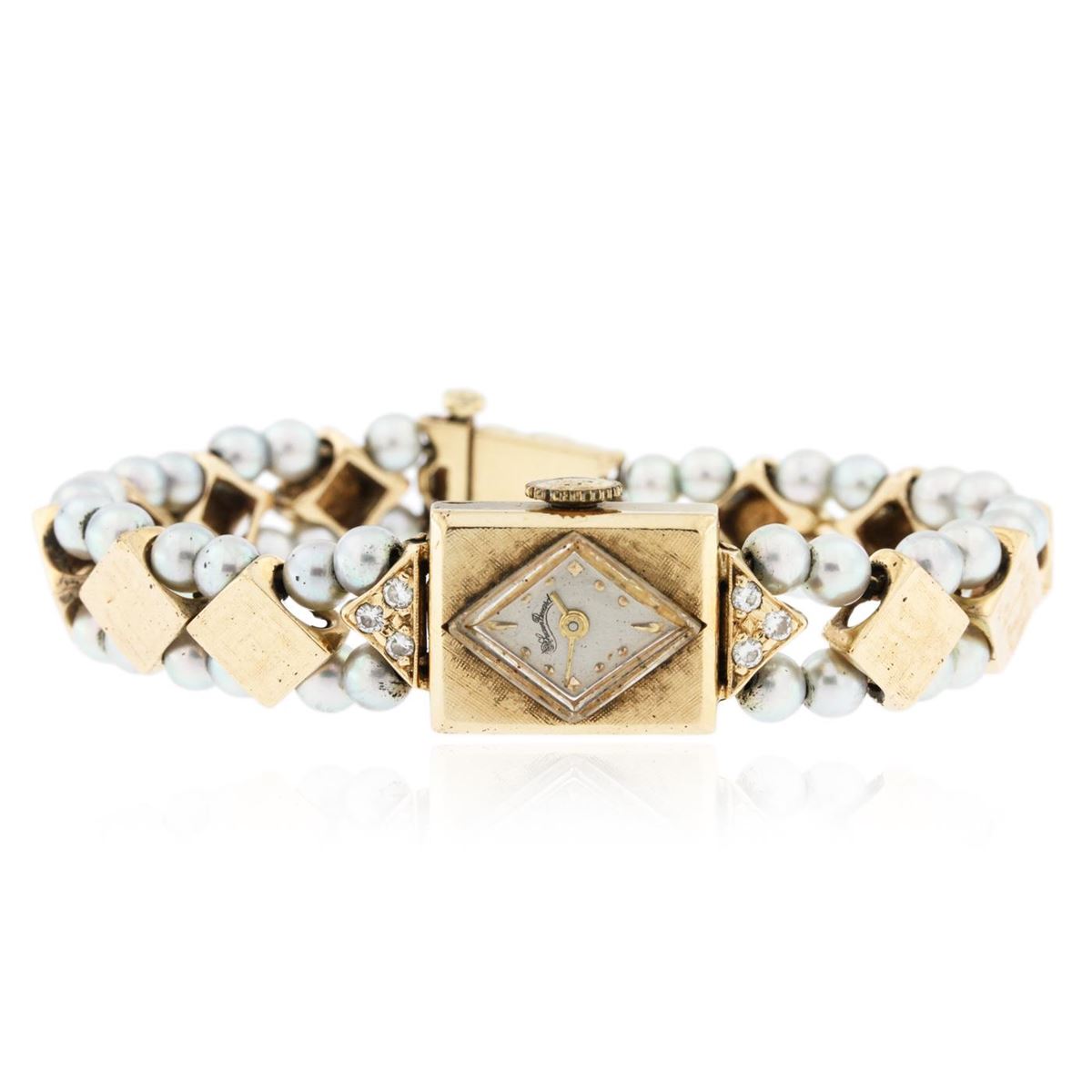 One ladies, machine milled & hand crafted Lucien Piccard wristwatch electronically tested 14KT yellow gold. Condition: G-5 Fine. Six and one half inch length. Six bright cut and bead set round brilliant cut diamonds, approx. weight of 0.18ct. Total weight of watch 30.62 gm. AIG Appraised at $2,880.00.