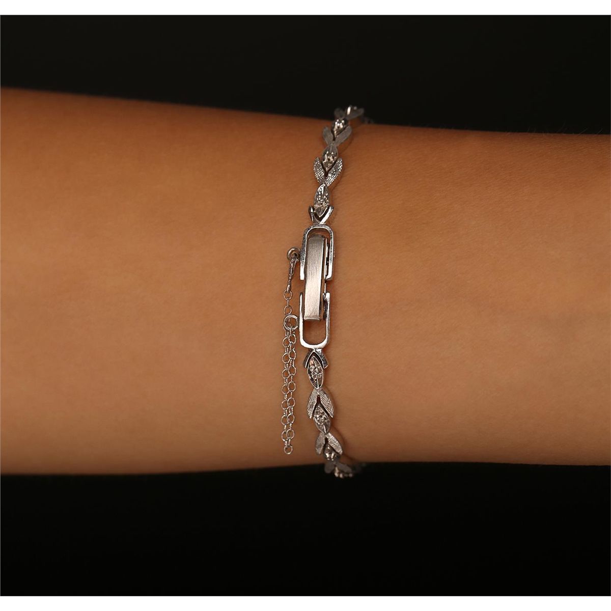 One ladies, vintage Bulova diamond wristwatch electronically tested, 14KT white gold Case: 17 x 13mm, Scalloped Crown: dial & movement set, Bezel: diamond set, Crystal: domed acrylic. Case No. 12432.USA Movement: twenty three jewel mechanical, Dial: Silvered, with baton pointed type hands, numerals & indices, 14KT white gold Bracelet: diamond set links, Condition: G-4 Average. Bright polish finish, Six inch length. Over locking clasp. Containing: Twenty Four bright cut & bead set single cut diamonds, approximate. Total Weight of 24 Stones = 0.15ct. Graded in the setting. Clarity: VS-1 to VS-2. Color: G - I. Total Weight of Diamonds 0.15ct. Total Weight of Watch 14.68 grams. AIG Appraised at $3,880.00.