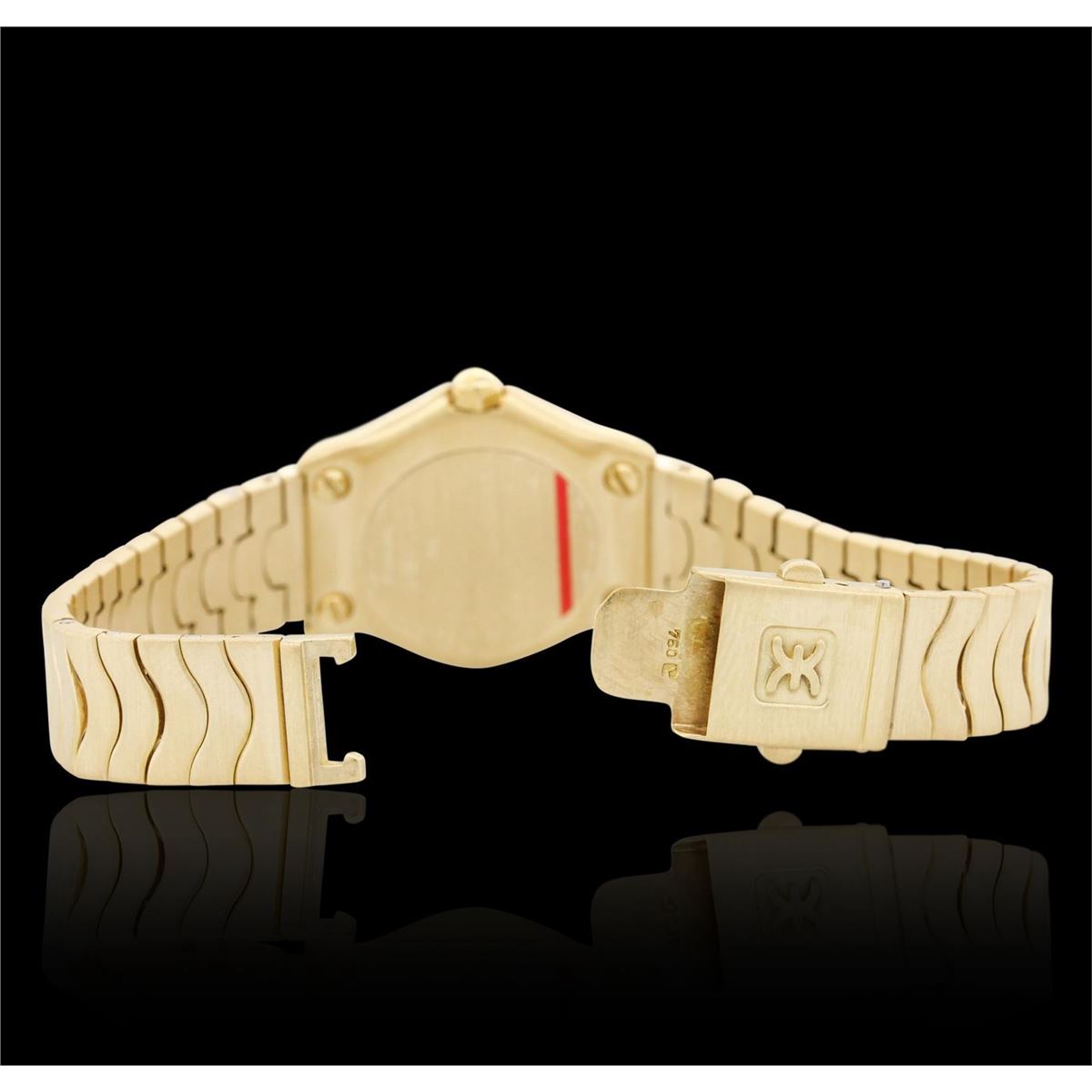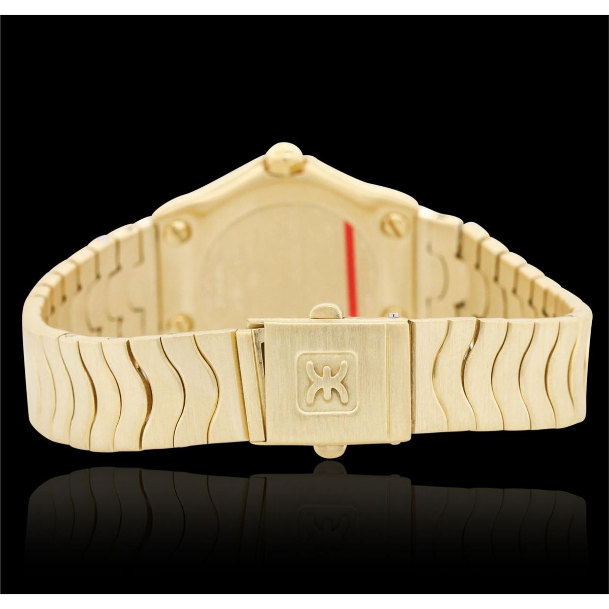 One ladies Ebel wristwatch featuring: 18KT Yellow Gold dial, case, crown, bracelet five screw bezel, gold dial with analog display, Ebel logo at 12 o'clock position, hour markers, black hour and minute hands Swiss movement, jeweler's clasp. Watch weighs a total of 52.90 grams.