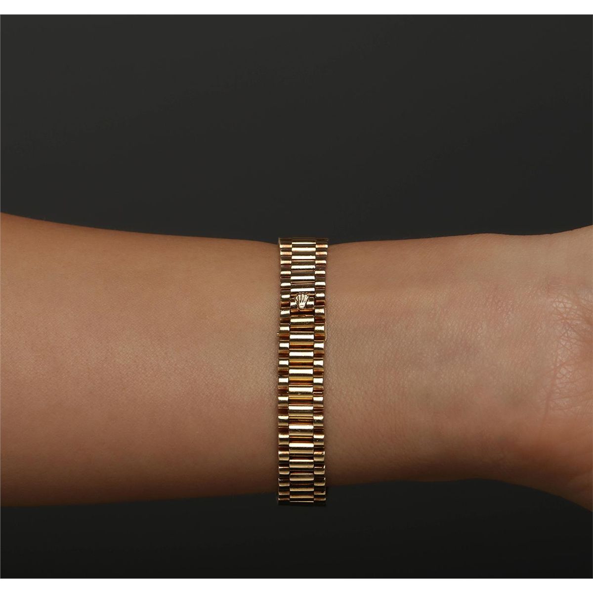 One ladies, hand crafted & machine milled Rolex Oyster Perpetual, model wristwatch electronically tested, Circa: 1986, 14KT yellow gold Case: 25mm oyster, Crown: twinlock with logo, Custom Bezel: diamond set, Custom Crystal: synthetic sapphire lens.Movement: stem wind mechanical, Dial: Light Champagne, with baton hands & indices, Bracelet: 14KT yellow gold jubilee, Condition: G-4 Average. Bright polish & satin finish. Six and one half inch length, adjustable. Concealed 18KT yellow gold deployment clasp, with logo. Containing:Thirty Two single cut diamonds, measuring an average of 2.30mm in diameter, approximate total weight = 1.45ct. Set & graded in the bezel. Clarity VS-2 to SI-2. Color: G - H. Total Weight of Diamonds 1.45ct. Total Weight of Watch 58.93gm. AIG Appraised at $16,300.00.