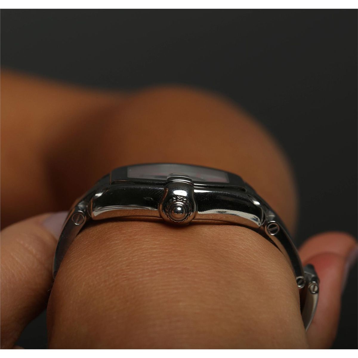 One ladies Cartier LadyRoadster wristwatch featuring: Stainless Steel Case, Mother of Pearl Dial, Pink Roman Numerals.