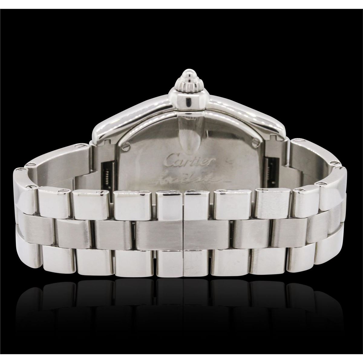 One ladies Cartier LadyRoadster wristwatch featuring: Stainless Steel Case, Mother of Pearl Dial, Pink Roman Numerals.
