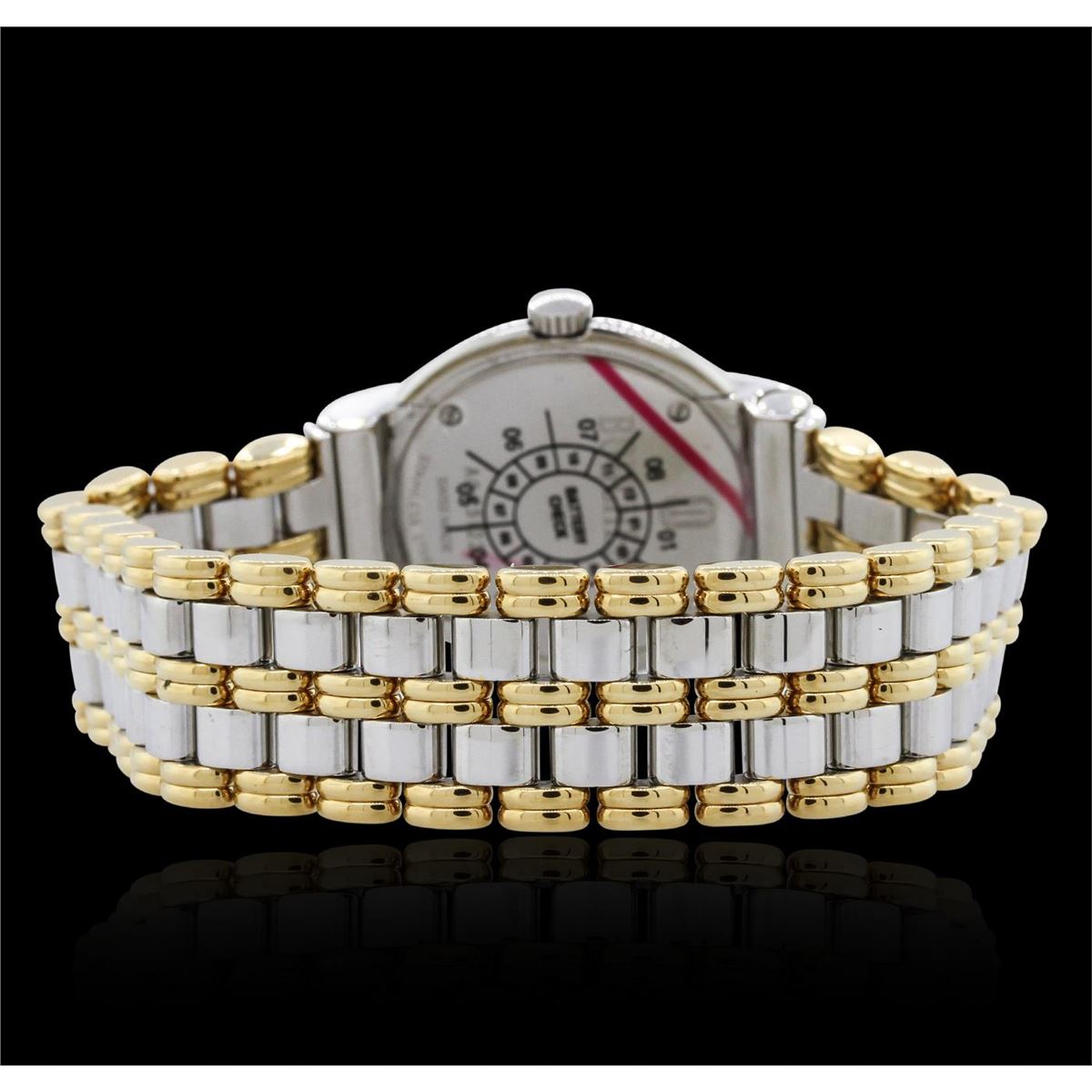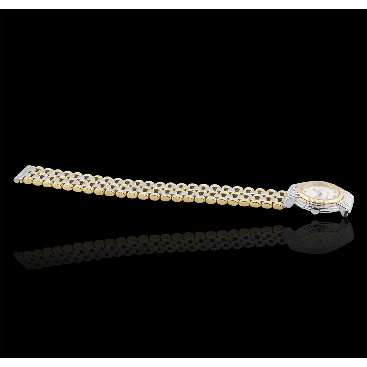 One ladies Boucheron Solis Wristwatch featuring: Two-Tone Gold Champagne Dial and Case, 30.5mm without the crown, Quartz Battery Movement, Date at 6 o'clock position, stainless steel buckle.