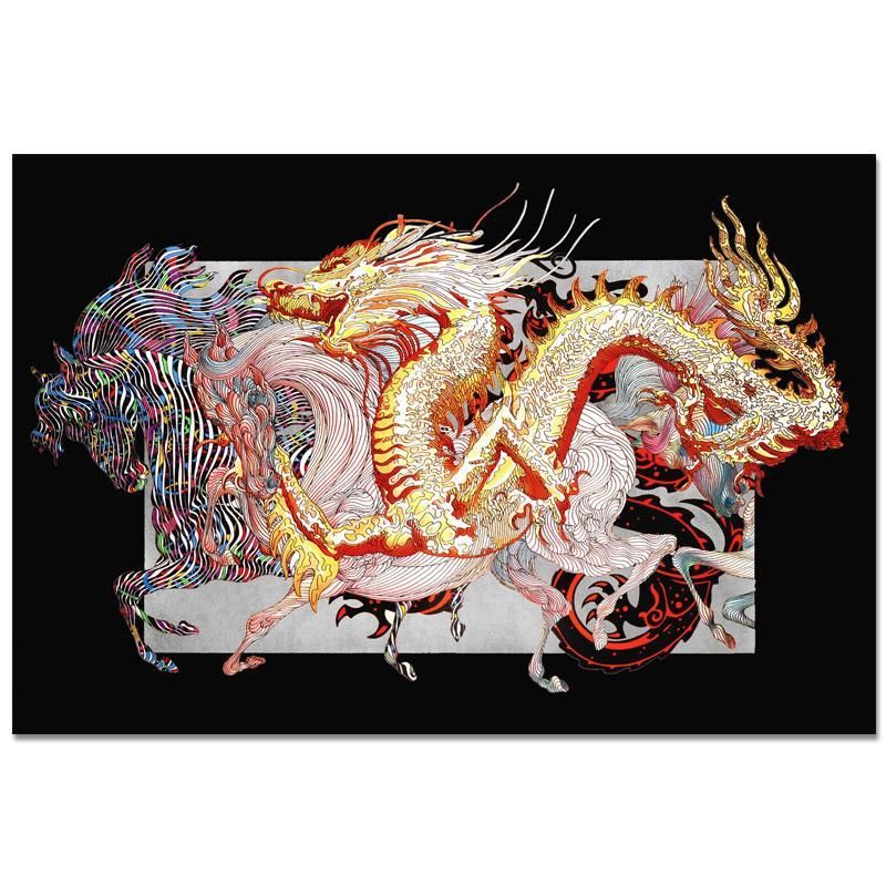 Well-known for his intricate linework and complex designs, Guillaume Azoulay creates works of art that are explosively enchanting. "Le Dragon D'ore" is a limited edition serigraph on heavy black artist paper with hand laid silver leaf by Azoulay, numbered and hand signed by the artist! Featured on the cover of the 2013 Edition of the universally known PrintWorld Directory! Measures approx. 41.5" x 28" (including border); 37" x 23" (image).