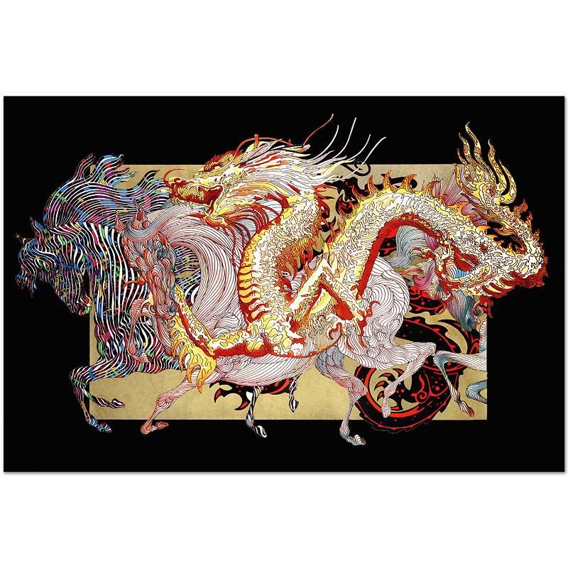 Well-known for his intricate linework and complex designs, Guillaume Azoulay creates works of art that are explosively enchanting. "Le Dragon D'ore" is a limited edition serigraph on heavy black artist paper with hand laid gold leaf by Azoulay, numbered and hand signed by the artist! Featured on the cover of the 2013 Edition of the universally known PrintWorld Directory! Measures approx. 41.5" x 28" (including border); 37" x 23" (image).