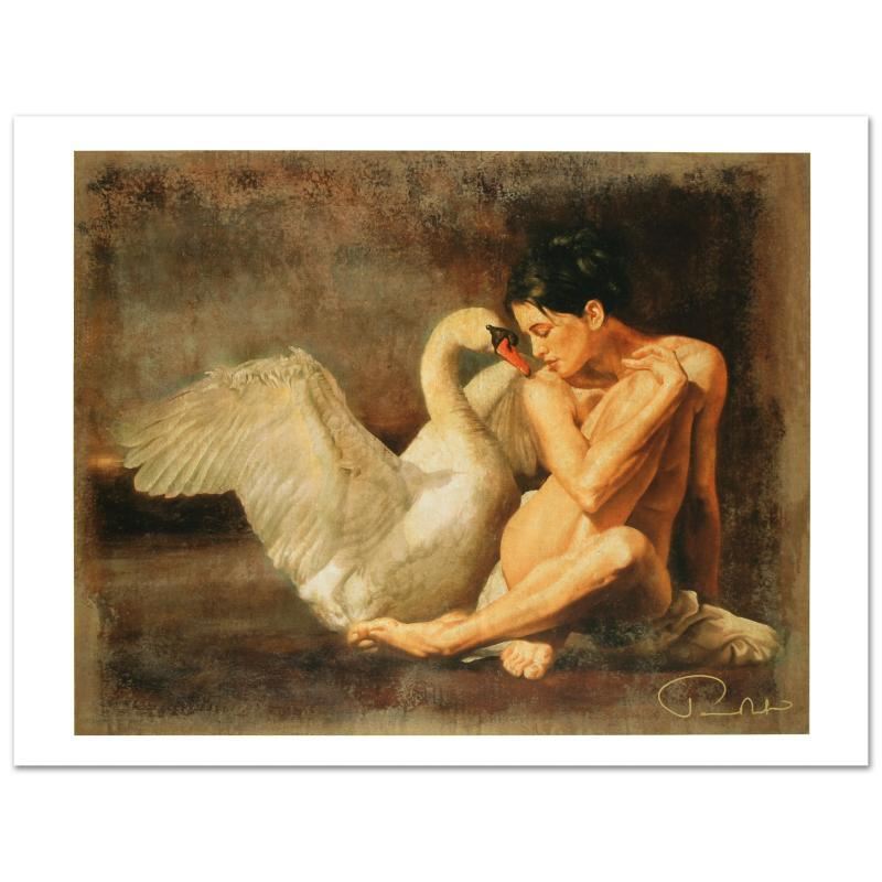 With a style that is reminiscent of the frescoes of Michelangelo and Caravaggio, Tomasz Rut creates breathtaking works of art that capture the beauty of the human form. "Leda Nova" is a limited edition giclee on canvas, numbered and hand signed by Rut. Includes Certificate of Authenticity! Measure approx. 37.5" x 30" (image).