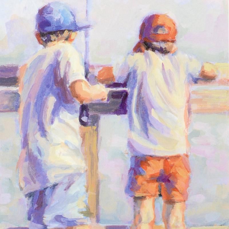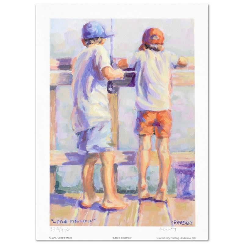 "Little Fishermen" is a limited edition lithograph on paper, numbered and hand signed by Lucelle Raad! Measures approx. 6" x 8" (with border); 5" x 7" (image).