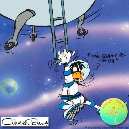 Own this amazing piece based on the original line image hand drawn and hand-inked on paper by Mr. Jones! "Looney Landing" is a limited edition animation cel from a sold out edition with hand-painted color on sericel outline, numbered and hand signed by Chuck Jones (1912-2002)! The sericel comes with a brilliant full-color background. Measures approx. 12.5" x 10.5" (sericel and background).