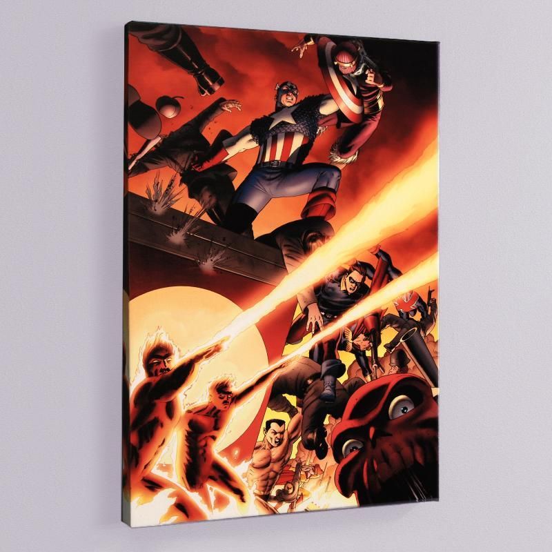 A piece of comic book history, this limited edition print, drawn by John Cassaday, depicts Captain America and Bucky. In 1997, shortly after his entrance into the world of comic book art, John Cassaday began to work Marvel Comics, working primarily on X-Men/Alpha Flight. He has also worked on Captain America, Secret War, and Union Jack. "Fallen Son: Death of Captain America #5" is a limited edition numbered giclee on stretched canvas by John Cassaday presented by Marvel Comics. This piece is gallery wrapped and ready to hang. Measure approx. 18" x 27" (image); 1.5" (depth).
