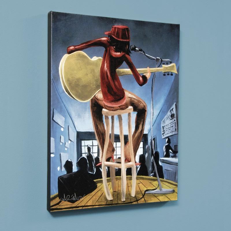 Combining his passions for music and art, David Garibaldi creates visual poetry. "Maxine" is a limited edition giclee on stretched canvas, R numbered and bearing the artist's authorized signature. This piece is gallery wrapped and ready to hang. Includes Certificate of Authenticity! Measures approx. 18" x 24" (image).
