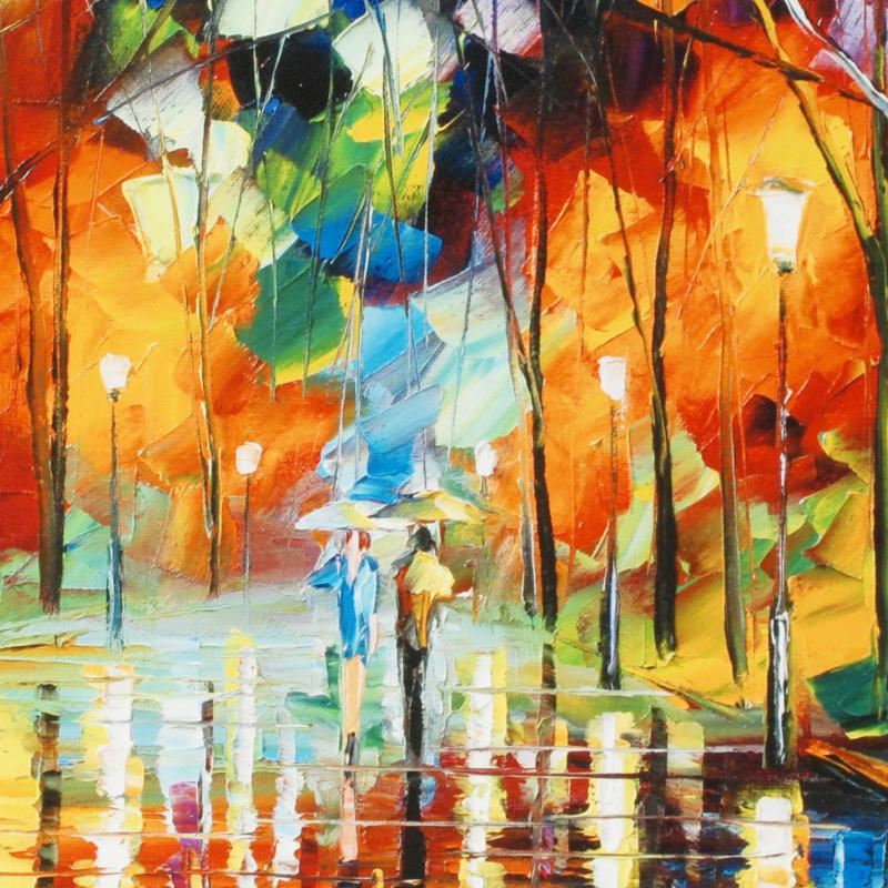Leonid Afremov's masterful use of color and texture make his paintings unique collectibles that are sure to brighten any wall. "Mirror Streets" is a limited edition giclee on stretched canvas, numbered in verso and bears Afremov's authorized signature. This piece comes gallery wrapped and ready to hang. Measures approx. 27" x 16" (image).