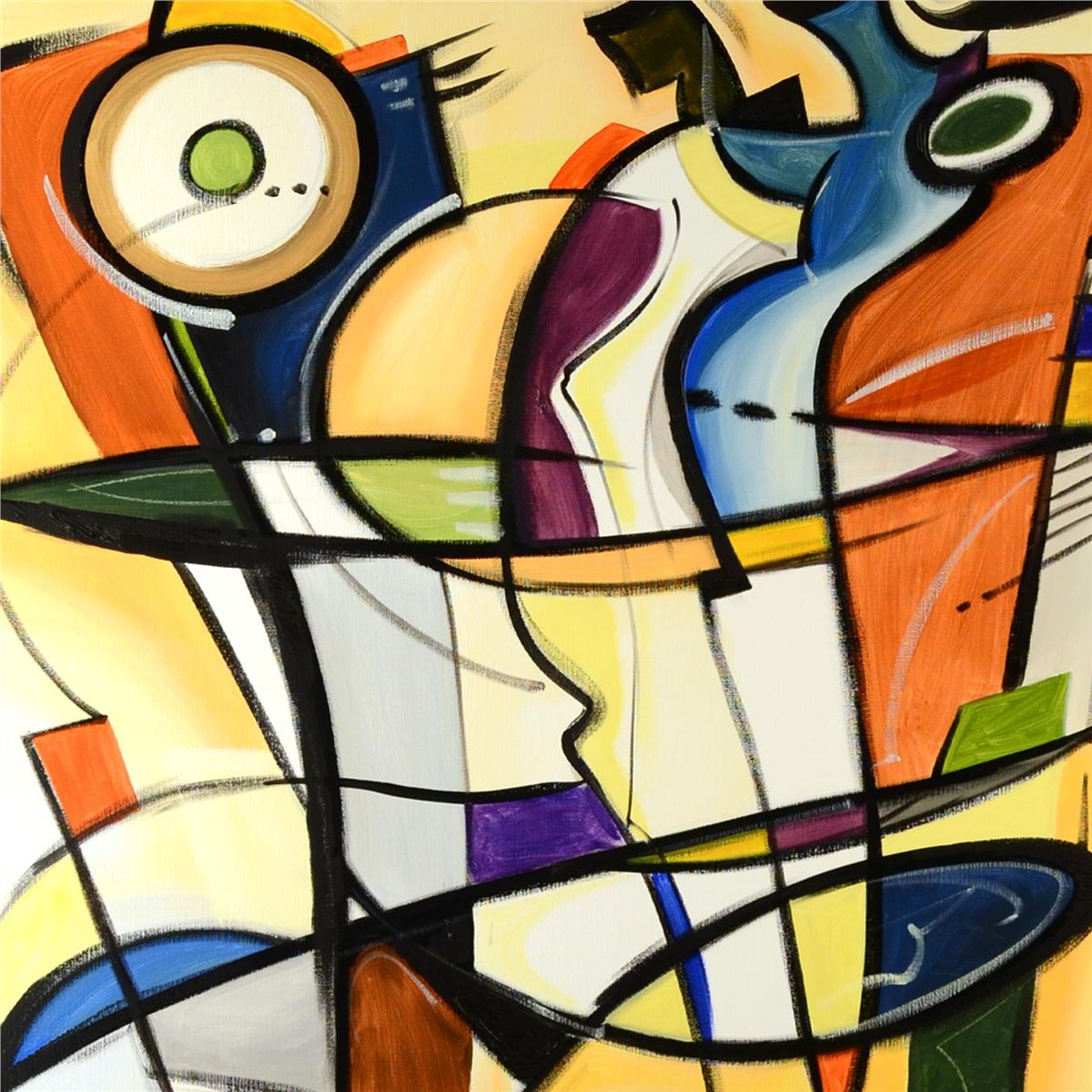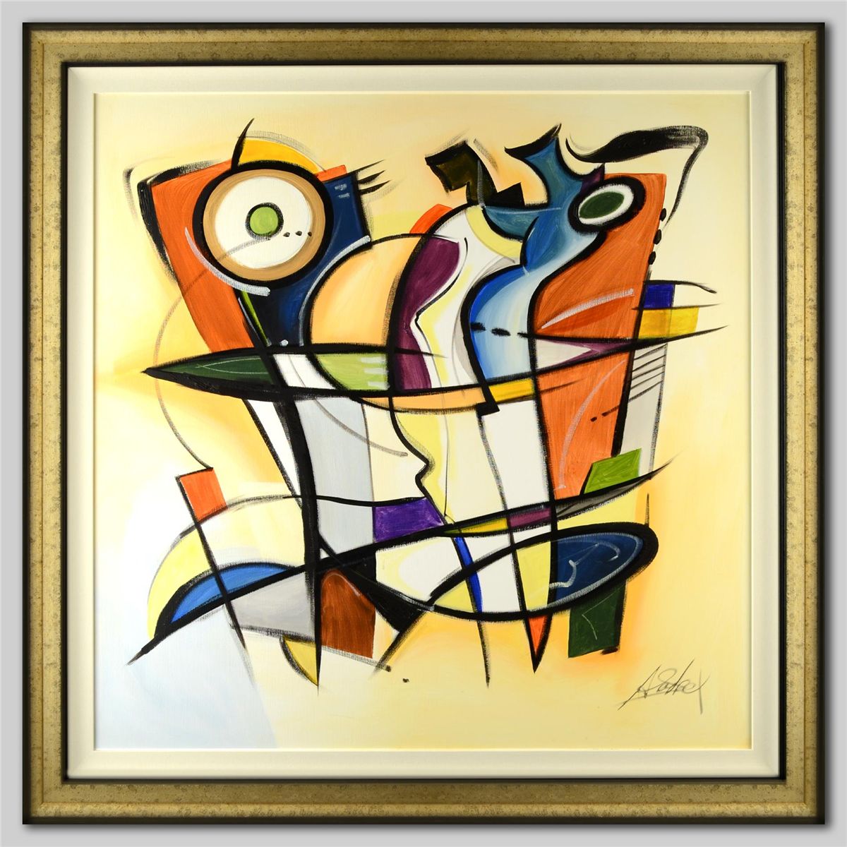 Fluid shapes and bold colors characterize Alfred Alexander Gockel's energetic modern masterpieces. "A Blink Of An Eye" is an original acrylic painting on canvas, hand signed by the artist. This piece has been custom framed and ready to hang. Measures approx. 56" x 56" (with frame); 47" x 47" (image).