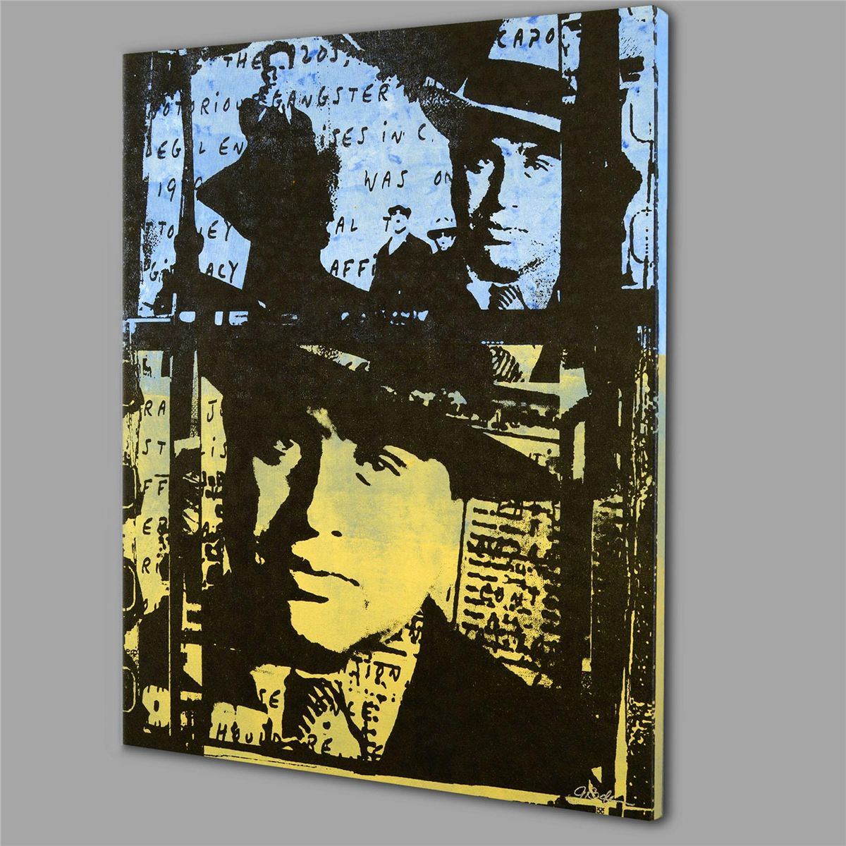 Renowned for her pop art creations, Gail Rodgers creates pieces that catch your eye and compel you to look a little closer. "Al Capone" is a one-of-a-kind hand-pulled silkscreen and acrylic painting on canvas by Gail Rodgers, hand signed by the artist. Gallery wrapped and ready to hang! Measures approx. 33" x 40" (image).
