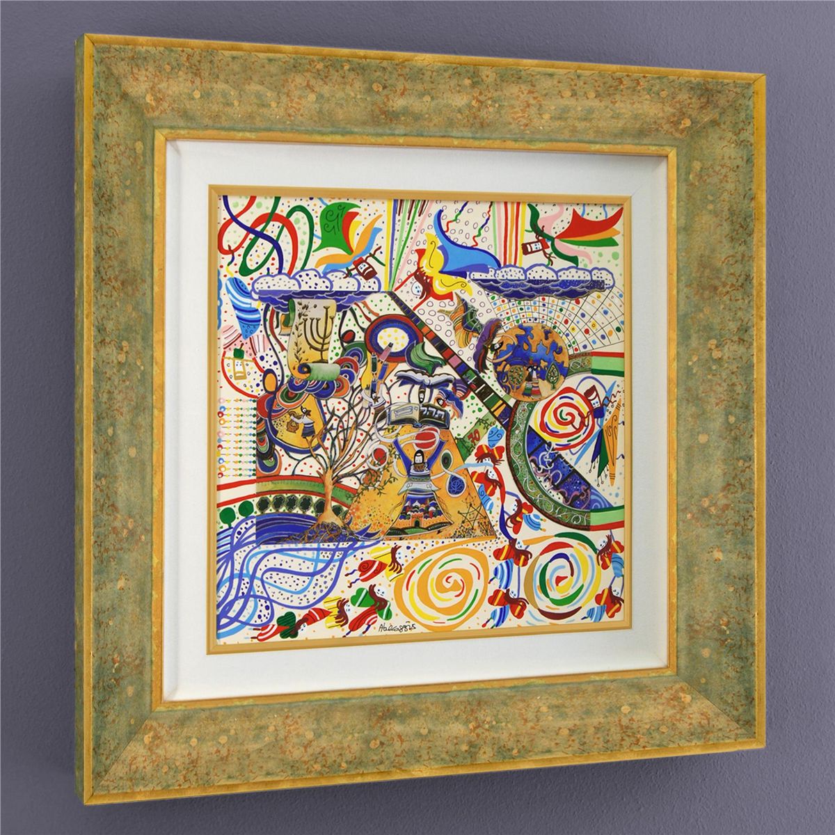 Combining exquisite detail and a perfect color scheme, Abecassis creates harmonious works of passion. With masterful detail and artistry, Abecassis creates a feast for the eyes in all his artworks. "Psalms" is an original mixed media painting on paper, hand signed by the artist! This piece comes custom framed and ready to hang. Measures approx. 25.5" x 25.5" (with frame); 15.5" x 15.5" (image).