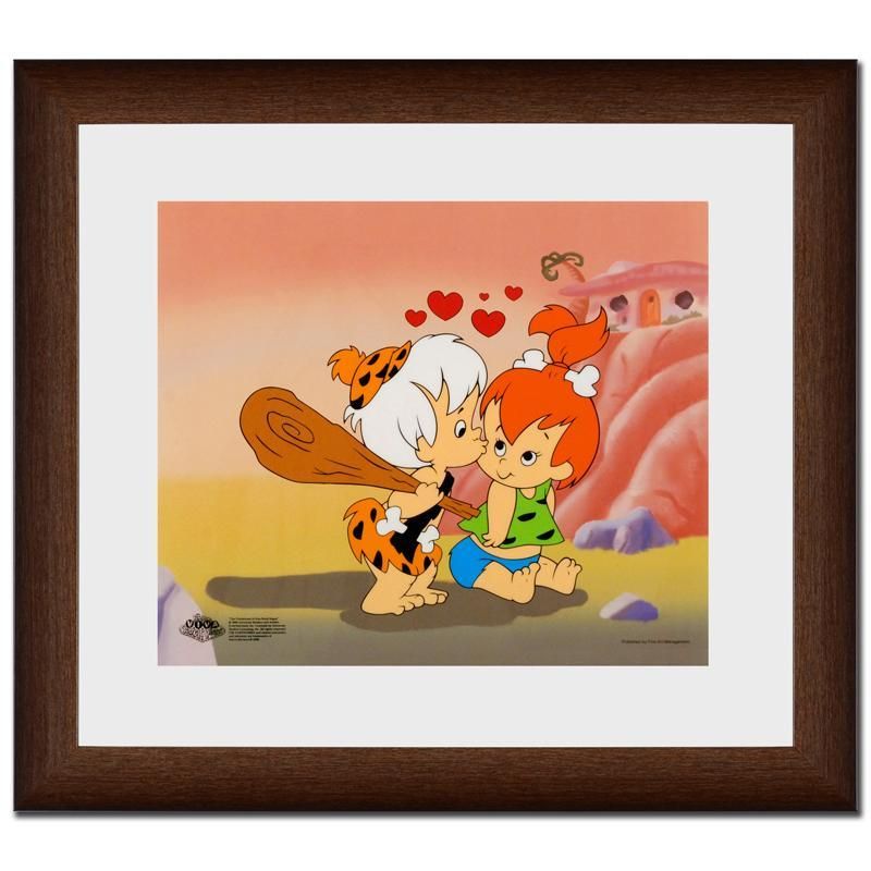 "Pebbles And Bam Bam" is a limited edition sericel officially licensed by Universal Studios Licensing! This piece comes framed and is ready to hang. Measures approx. 18.5" x 16" (with frame), 12" x 10" (image with background).