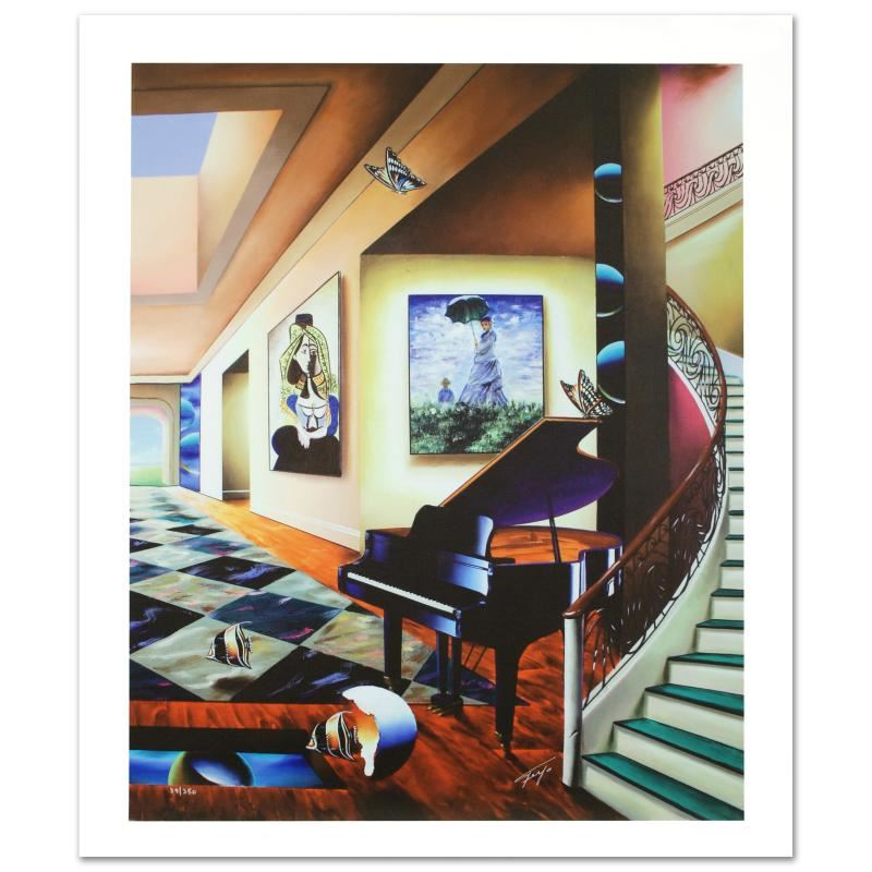 "Perfect Afternoon" is a limited edition giclee diptych on canvas, numbered and hand signed by Ferjo. This piece comes in two adjoining canvases, both have matching edition numbers; it is intended to be displayed as a diptych. Measures approx. 24" x 30" (each image)