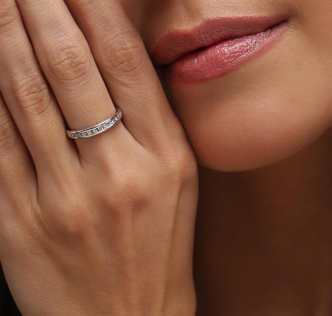 One ring featuring: platinum weighing 4.00 grams containing channel set round diamonds with a total weight of 0.25ct.
