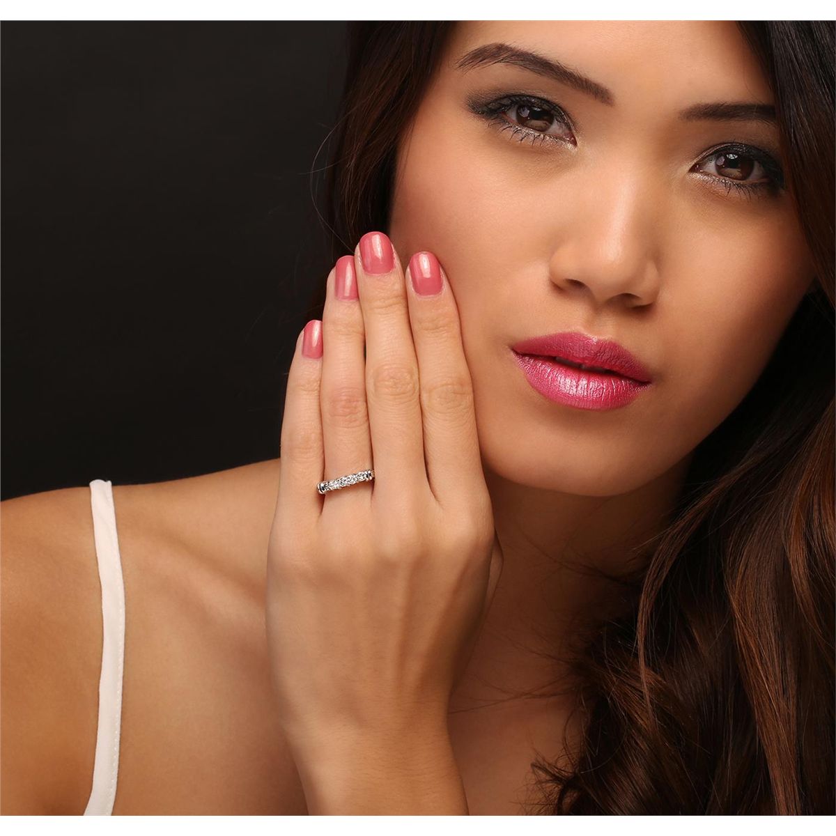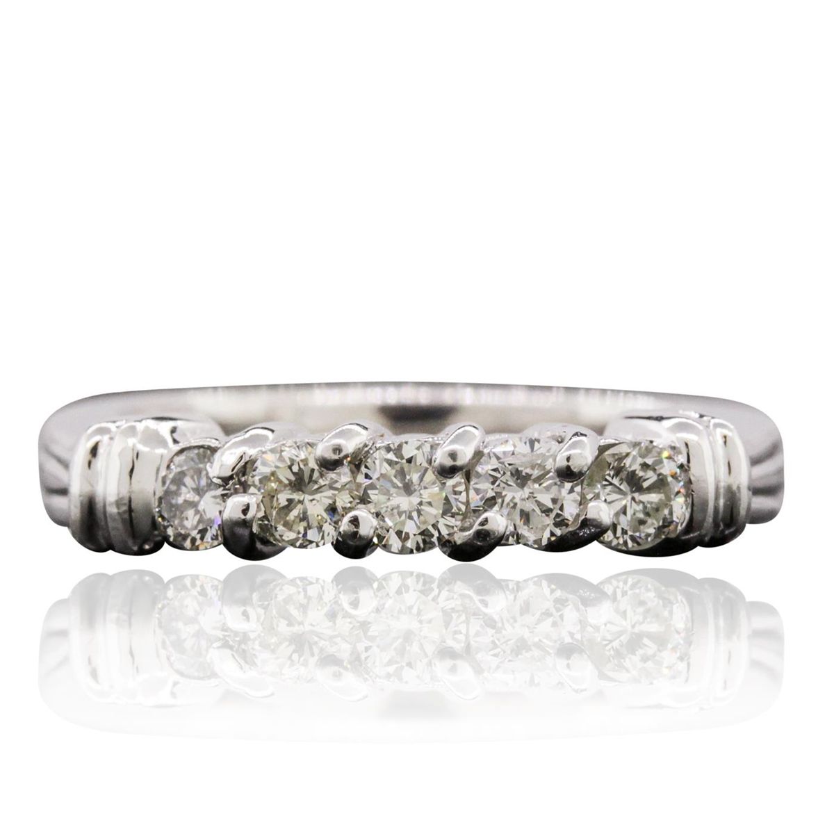 One electronically tested platinum Ladies combination cast & assembled ring with a bright polish finish. Condition is very good. Identified with markings of "PLAT". Containing: Five prong set round brilliant cut diamonds, measuring 2.80 - 2.80 x 1.68mm (depth est.) approximate. Total Weight of 5 Stones = 0.40ct. Clarity: I-1 to I-2. Color: J - K, Cut is Good. All diamonds are graded in the mounting, unless otherwise stated. Total Weight of Diamonds 0.40ct. Total Weight of Ring 7.70 grams.. GGL Appraised at $6,015.00.