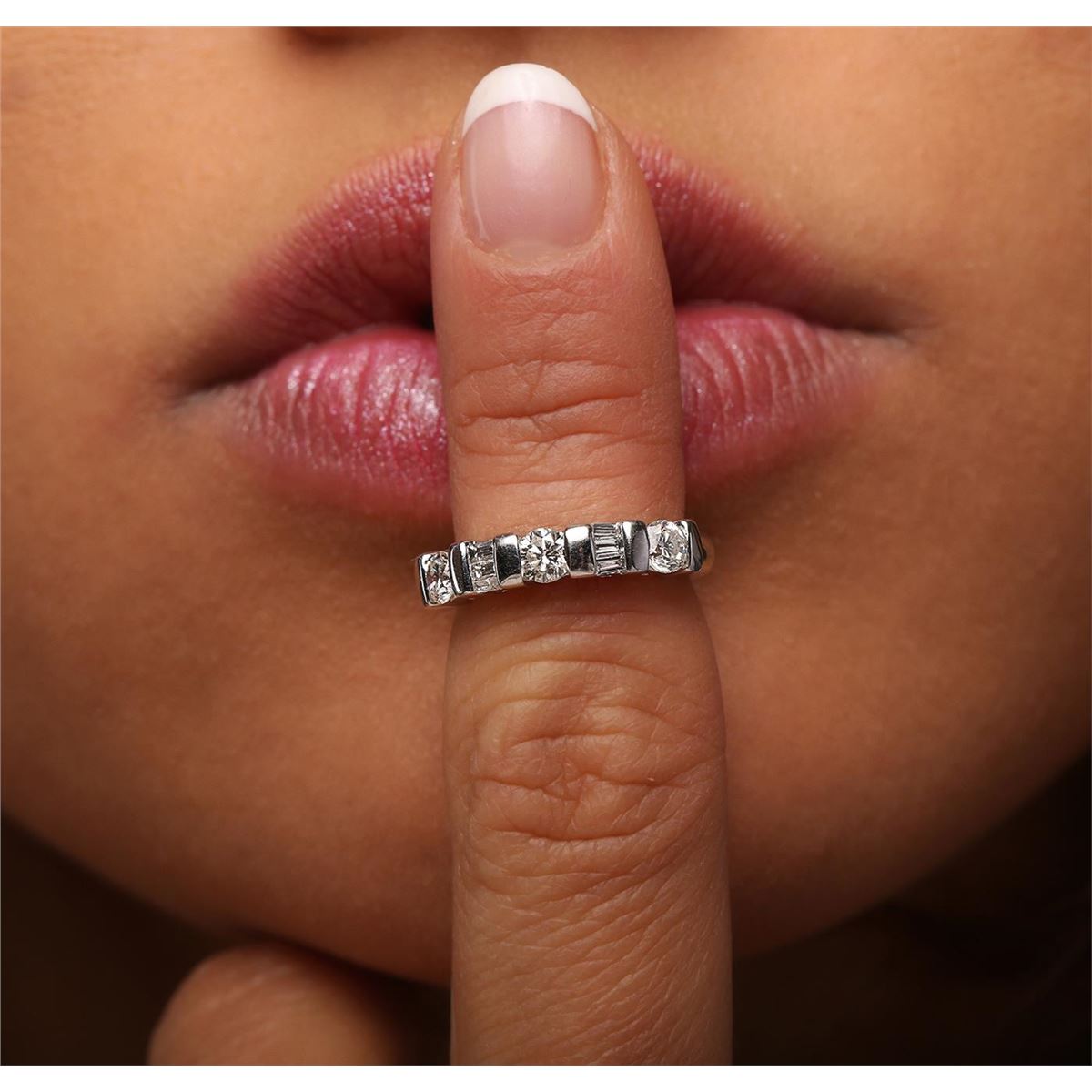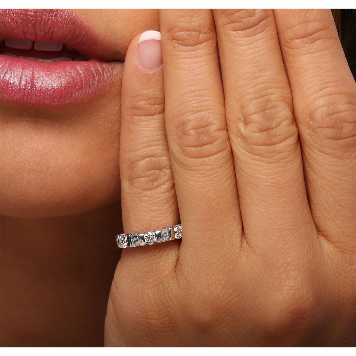 One Ring featuring: Platinum with a total weight of 6.70 grams, and Diamonds with a total weight of 0.70ctw.