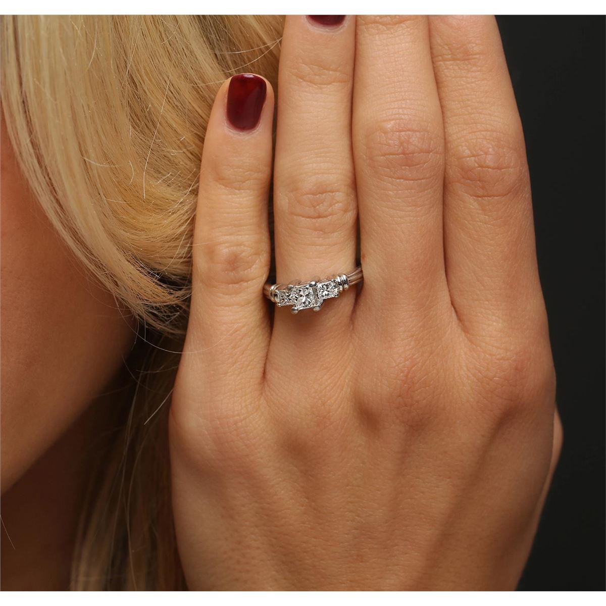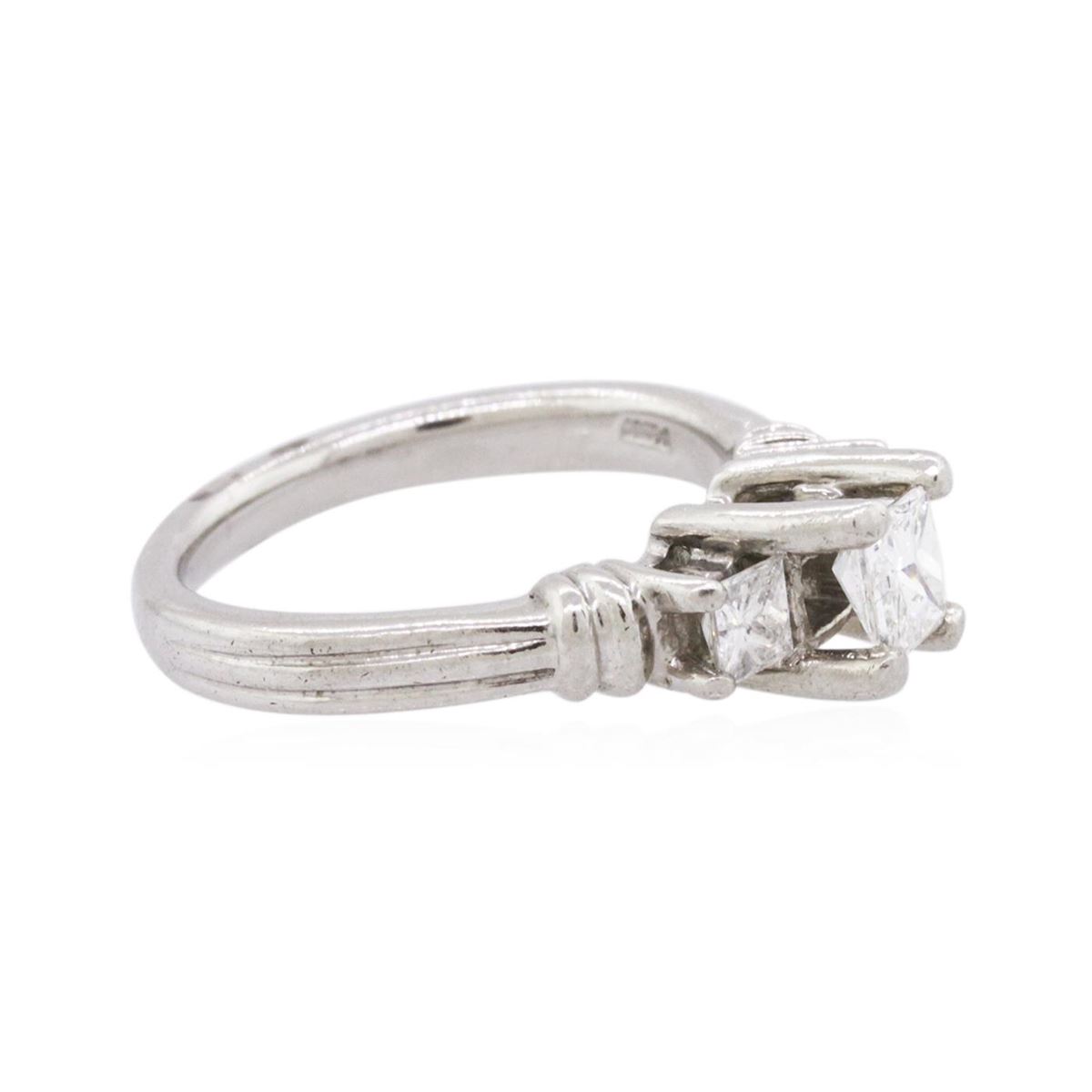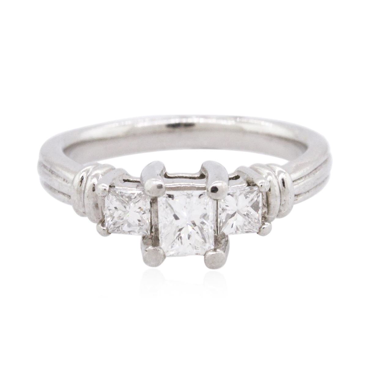 One electronically tested platinum ladies combination cast & assembled engagement ring with a bright polish finish. Identified with markings of "PT 950". Condition is very good. Containing: One prong set princess cut diamond, measuring 4.00 x 4.00 x 3.00mm (depth est.) approximate weight of 0.39ct. Clarity: SI-2. Color: I, Cut is Good. Two prong set princess cut diamonds, measuring 3.00 x 3.00 x 2.25mm (depth est.) approximate total weight of 2 Stones = 0.33ct. Clarity: VS-2 to SI-1. Color: H - I, Cut is Good. All diamonds are graded in the mounting, unless otherwise stated. Total Weight of Diamonds 0.73ct. Total Weight of Ring 7.50 grams. GGL Appraised at $6,880.00.