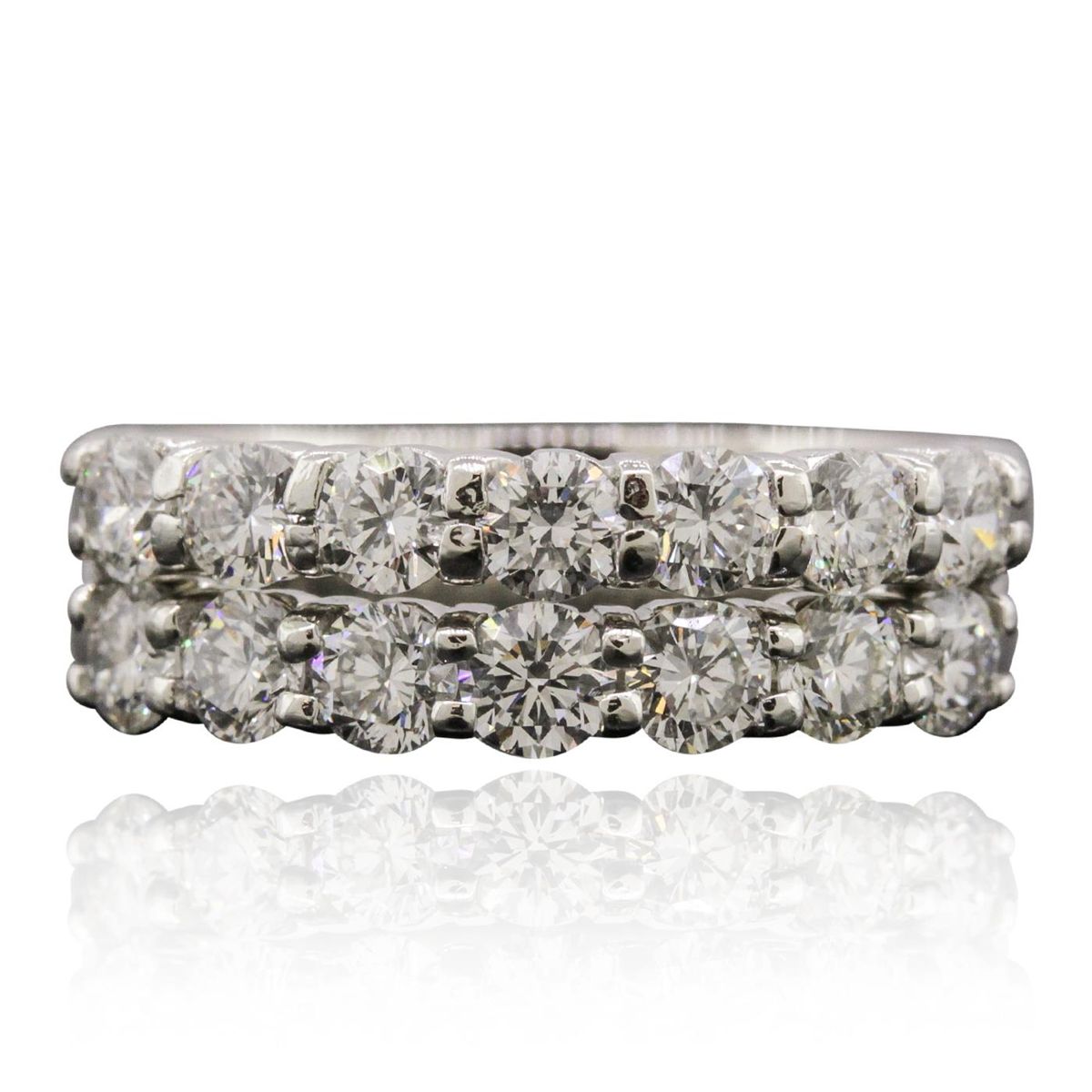 Two electronically tested platinum Ladies combination cast & assembled eternity rings with a bright polish finish. Condition is very good. Containing: Fourteen prong set round brilliant cut diamonds, measuring 2.50 - 2.50 x 1.50mm (depth est.) approximate total weight of 14 Stones = 0.80ct. Clarity of SI-1, Color of J - K, Cut is Very Good. All diamonds are graded in the mounting, unless otherwise stated. Total Weight of Diamonds 0.80ct. Total Weight of Rings 6.60 grams. GGL Appraised at $6,360.00.