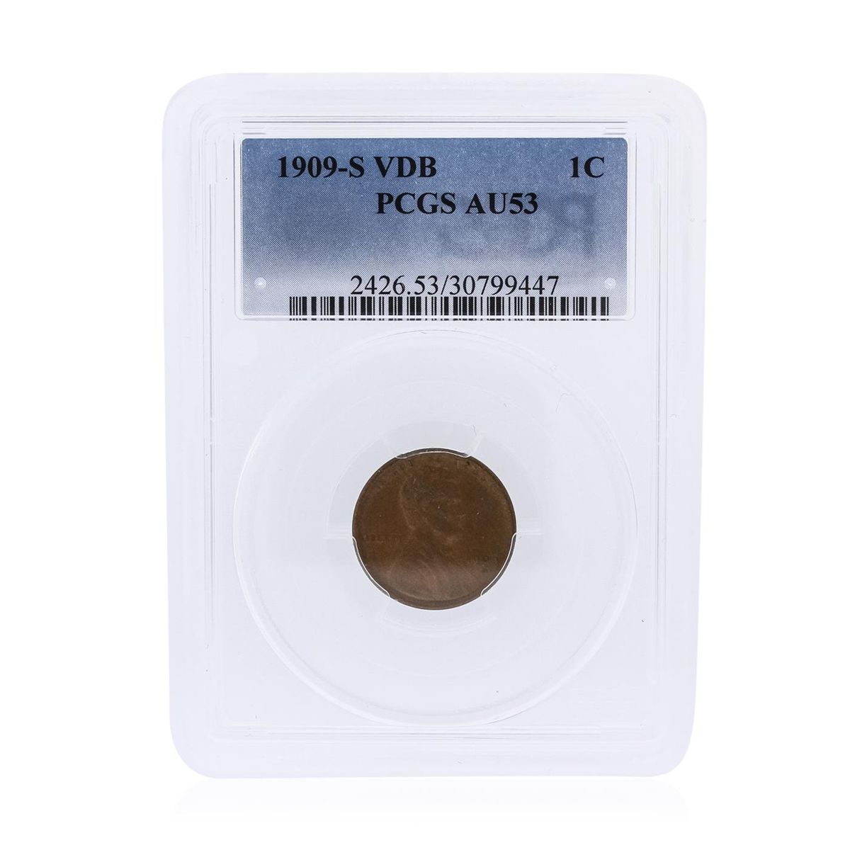 One RARE 1909-S VDB Lincoln "Wheat" Penny PCGS Graded AU53
