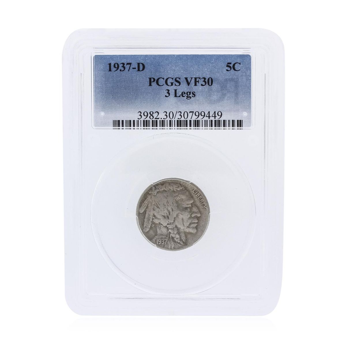 One RARE 1937-D 5 cent "3 Legs" Buffalo Nickel Coin PCGS Graded VF30