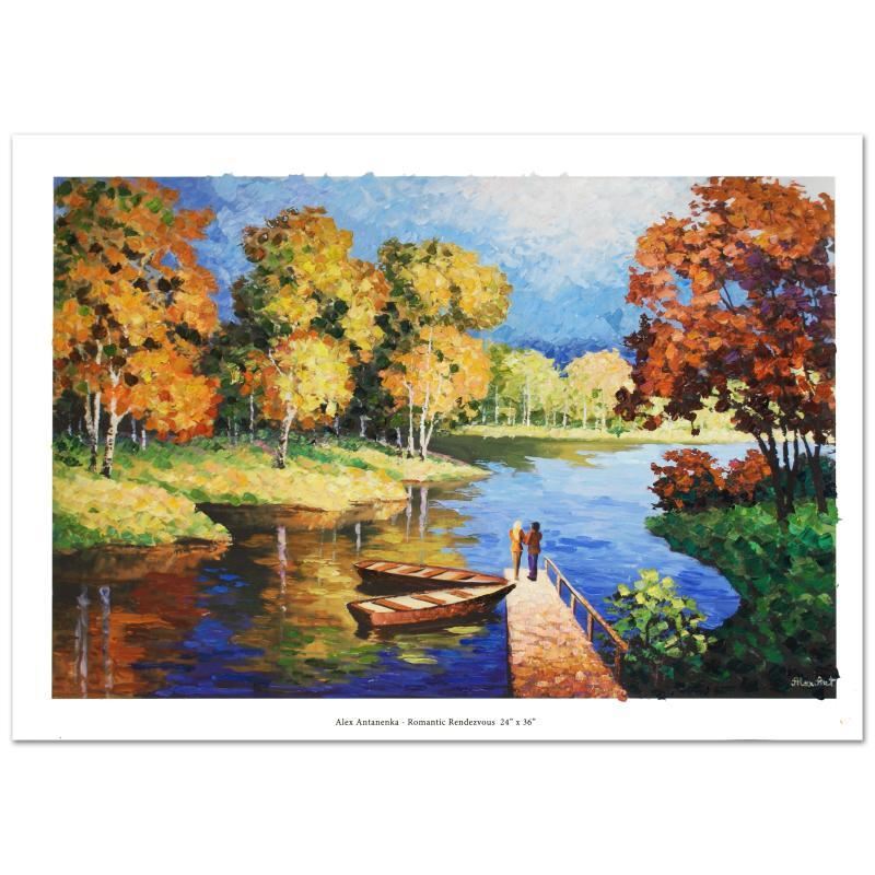 "Romantic Rendezvous" is a limited edition hand embellished giclee on canvas, numbered inverso and hand signed by Alexander Antanenka. Includes Certificate of Authenticity! Measures approx. 36" x 24" (image).