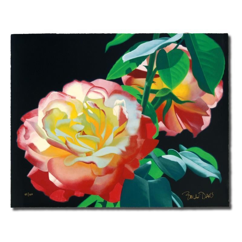 "Rose in the Leaves" is a limited edition giclee on deckle-edge paper by Brian Davis, numbered and hand signed by the artist. Includes Certificate of Authenticity! Measures approx. 20" x 16" (image).