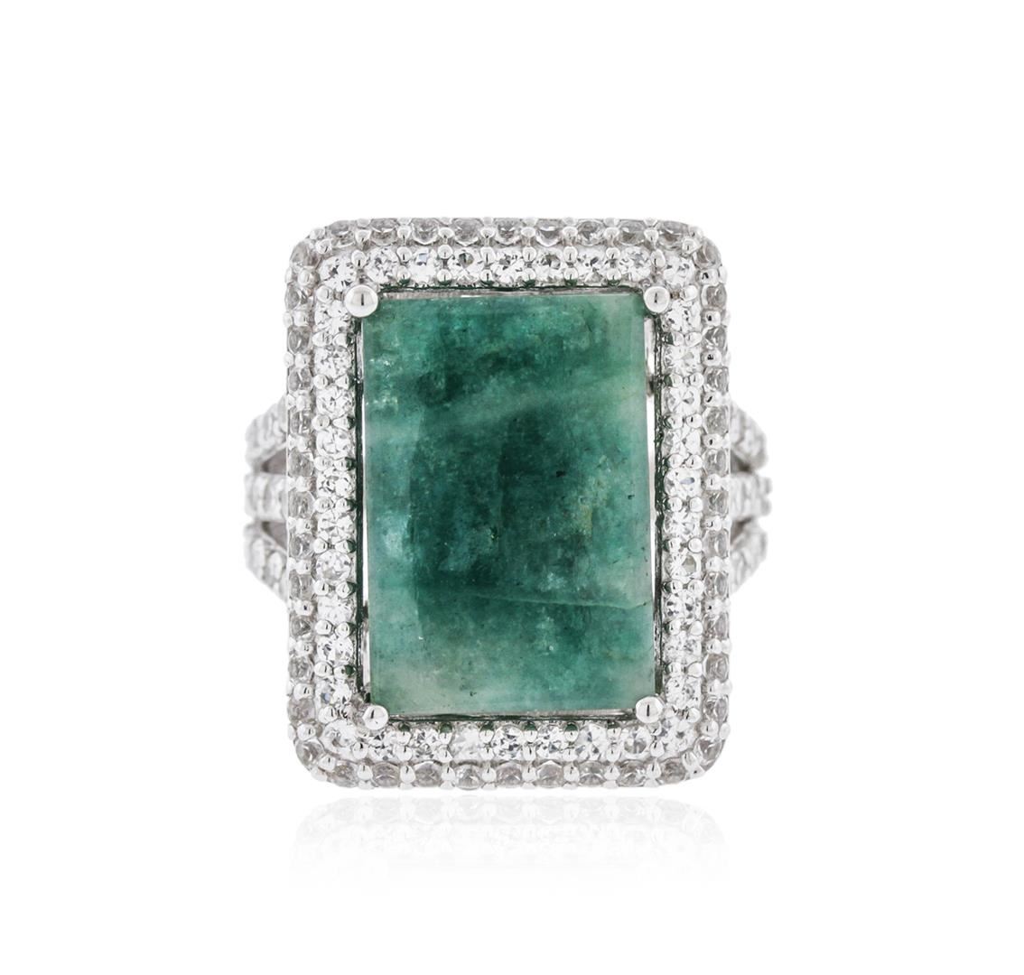 One ring featuring: silver weighing 9.50 grams containing one emerald with a total weight of 11.38ct and white sapphires with a total weight of 2.49ct.