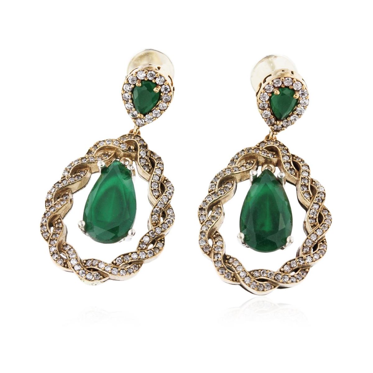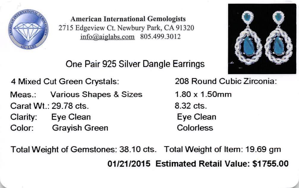 One pair electronically tested 925 silver ladies custom cast & assembled dangle earrings with standard backs. Bright and anodized finish with yellow gold accents. Identified with markings of "925". Condition is new, good workmanship. Containing: Two prong AIG Appraised at $1,755.00.