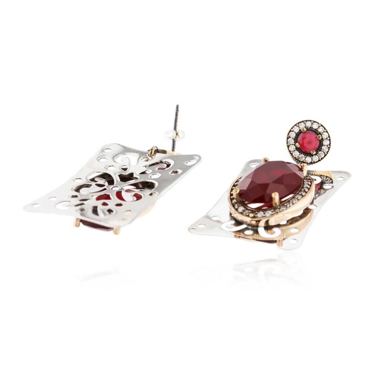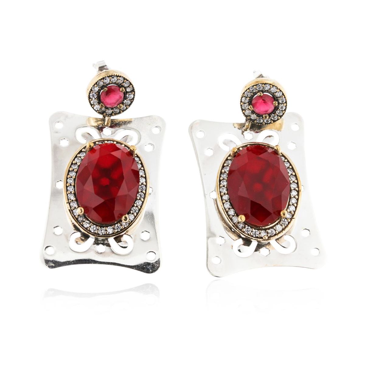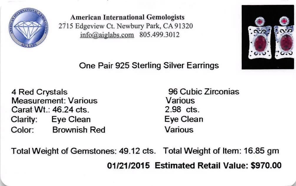 One pair electronically tested 925 silver ladies custom cast & assembled dangle earrings with standard backs. Bright and anodized finish with yellow gold accents. Condition is new, good workmanship. Containing: Two prong set oval mixed cut laboratory crea AIG Appraised at $970.00.