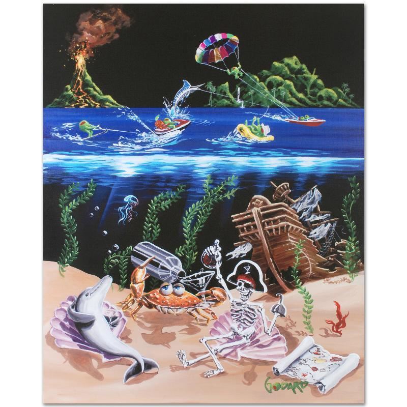 With unforgettable characters and undeniable charm, Michael Godard creates artworks that are sure to be the centerpiece of any room! "Sand Bar 2" is a limited edition giclee on stretched canvas, C/S numbered and bears Godard's authorized signature! This piece comes gallery wrapped and ready to hang. Measures approx. 28" x 35" (image).