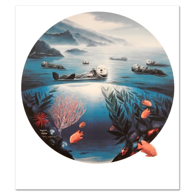Wyland's passion for marine life and aquatically-inspired artwork is evident in everything he creates. "Sea Otters" is a limited edition lithograph on paper, numbered and hand signed by Wyland! Measures approx. 25.5" x 28.5" (with border), 24" (round image).
