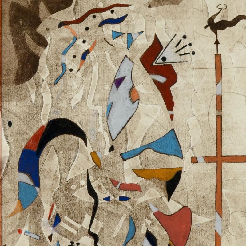 A true master of Modernism, Neal Doty uses captivating shapes and contrasting colors to create his masterpieces. "Search For Truth" is a mixed media original on paper, hand signed by Doty! This piece comes custom framed using acid free materials and is ready to hang. Measures approx. 23" x 28.5" (with frame); 14.5" x 19.5" (image).