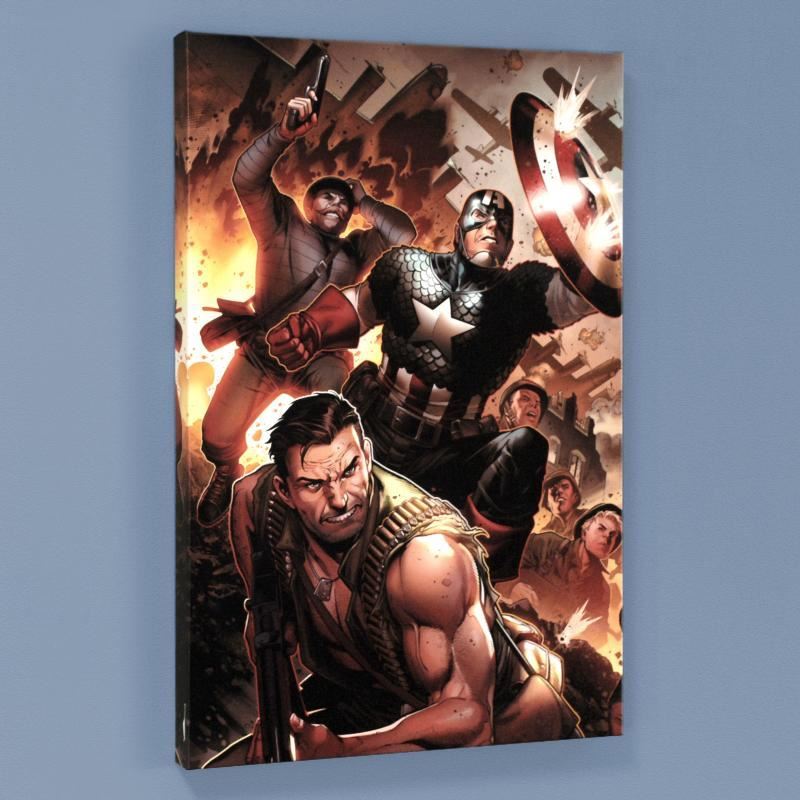 A piece of comic book history, this limited edition print, drawn by Jim Cheung, depicts the classic characters Nick Fury and Captain America. Jim Cheung was named as one of 2005's "Young Guns" by Marvel Editor-in-Chief Joe Quesada, and has been described as a "future superstar penciller." "Secret Warriors #17" is a limited edition numbered giclee on canvas by Jim Cheung presented by Marvel Comics. This piece comes gallery wrapped and ready to hang. Measures approx. 18" x 27" (image).
