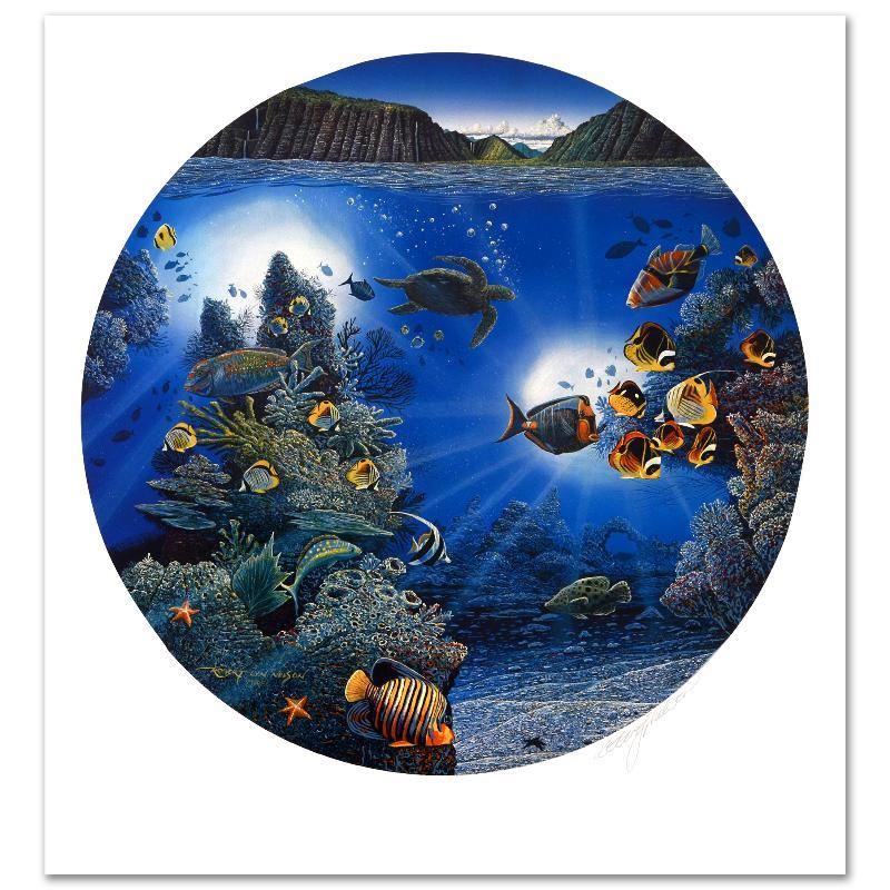 Captivating audiences worldwide, Nelson dazzles all with his incredible use of color and depth. "Serenity of Waipi'o" is a limited edition mixed media on paper, numbered and hand signed by the artist! Measures approx. 27.5" x 30" (with border), 24" x 24" (image).