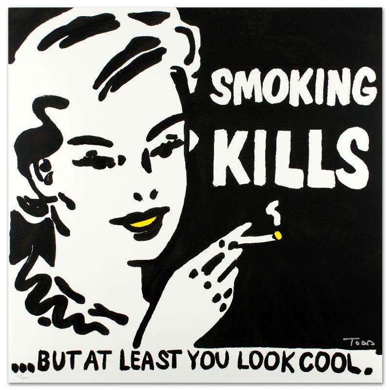 Pop artist Todd Goldman is known all across the globe for his whip-smart and wickedly funny puns and pictures! "Smoking Kills" is a limited edition lithograph on paper, numbered and hand signed by Todd. Measures approx. 32" x 32" (no border).