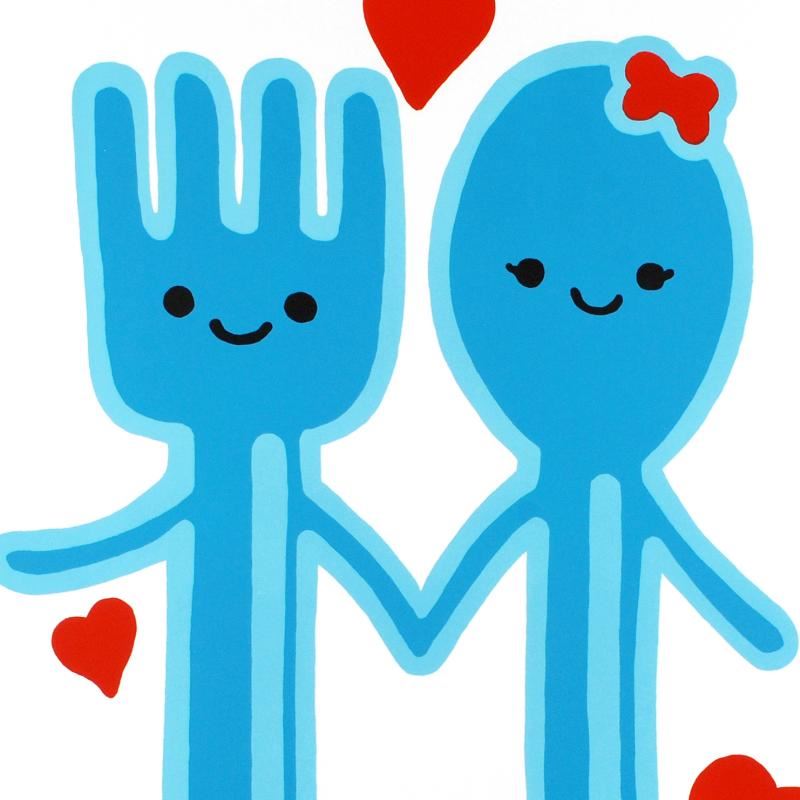 Pop artist Todd Goldman is known all across the globe for his whip-smart and wickedly funny puns and pictures! "Spooning Leads to Forking" is a limited edition lithograph on paper, numbered and hand signed by Todd. Measures approx. 25" x 35" (no border).