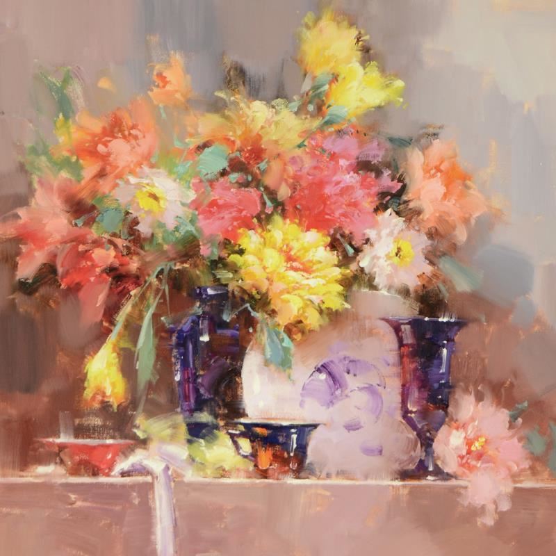 "Still Life" is an original oil painting on canvas, hand signed by Zahra! Measures approx. 32" x 32" (image).