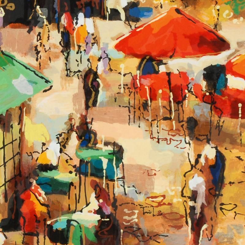 Michael Rozenvain's remarkable art piece is full of rich color and entertaining artistry! "Street Scene" is a limited edition serigraph on paper, hand signed by Rozenvain! Measures approx. 15" x 13" (with border), 14" x 12" (image).